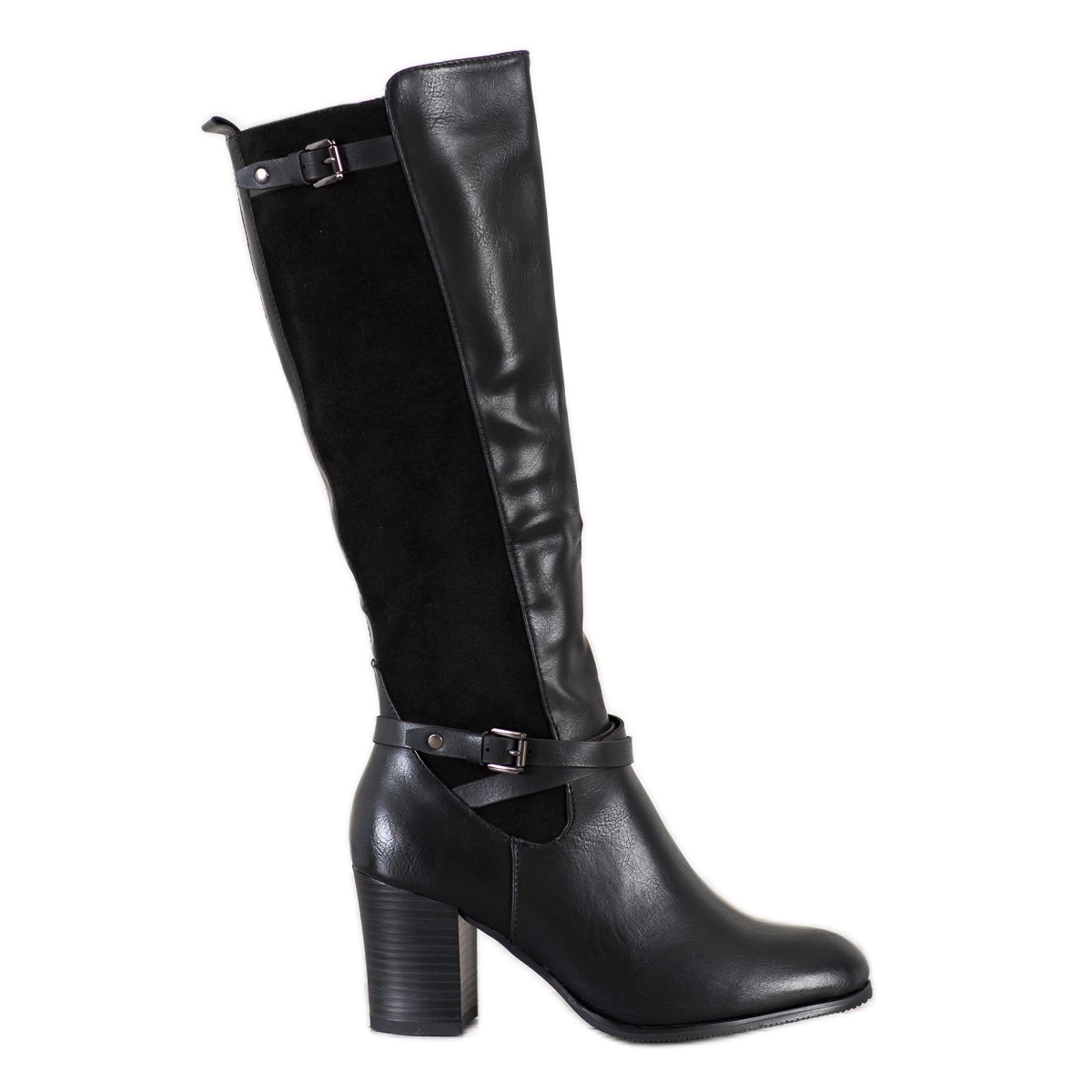 Tyto kozačky se zapínají na elegantní zip na boku a jsou nejen estetické, ale i praktické. Jedinečným akcentem je semišová vsadka v límci a tenký pásek s ozdobnou sponou protkaný na zápěstí, který dodává stylový charakter. Vysoký blokový podpatek vysoký 7,5 cm dokonale zvýrazní postavu a hladká podešev ze syntetického materiálu zajišťuje stabilitu a pohodlí při chůzi.
