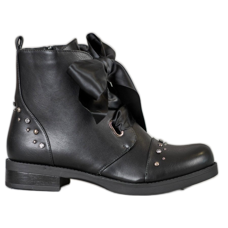 Kotníkové boty se stuhou od výrobce Bestelle jsou perfektní volbou pro ženy, které oceňují eleganci spojenou s pohodlím. Tyto stylové černé kozačky jsou vyrobeny z vysoce kvalitní ekologické kůže, díky čemuž vypadají velmi efektně a zároveň jsou šetrné k životnímu prostředí.