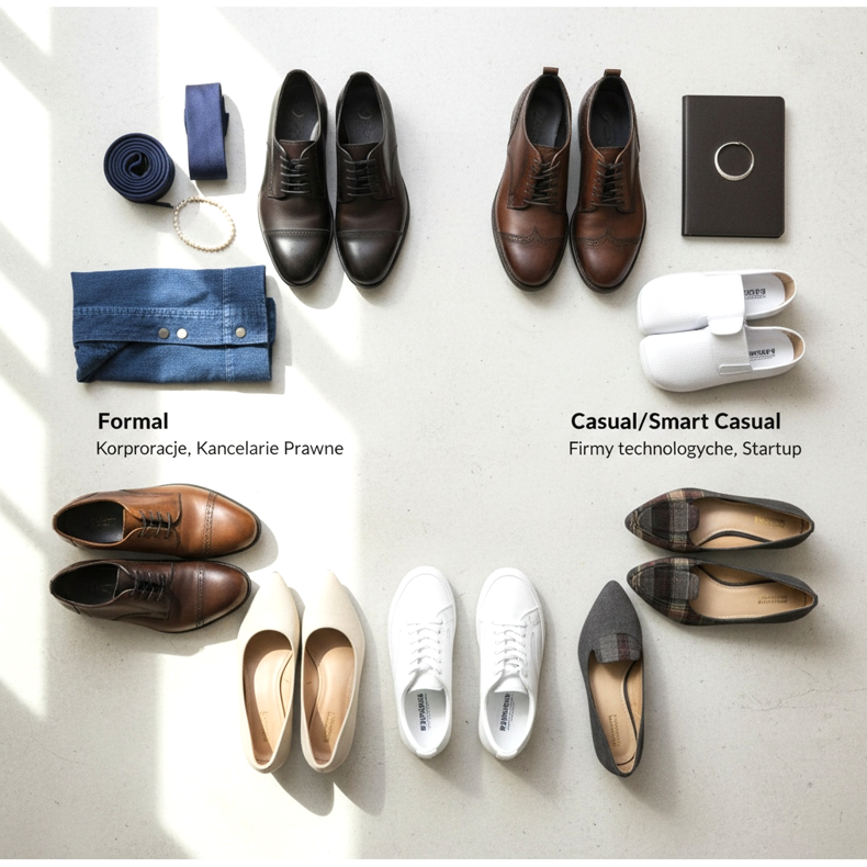 Technologické společnosti, kreativní agentury a startupy mají často uvolněný dress code. Můžete si dovolit brogues, mokasíny a dokonce i elegantní tenisky. Dámy mohou nosit balerínky, pánské nebo ploché boty. Důležitá je čistota a upravený vzhled, ne nutně formalita.
