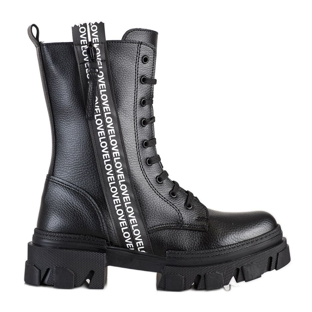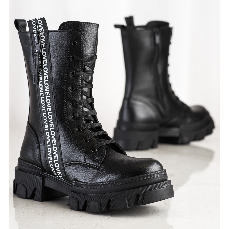 SHELOVET Boty s eko koženou láskou černý
