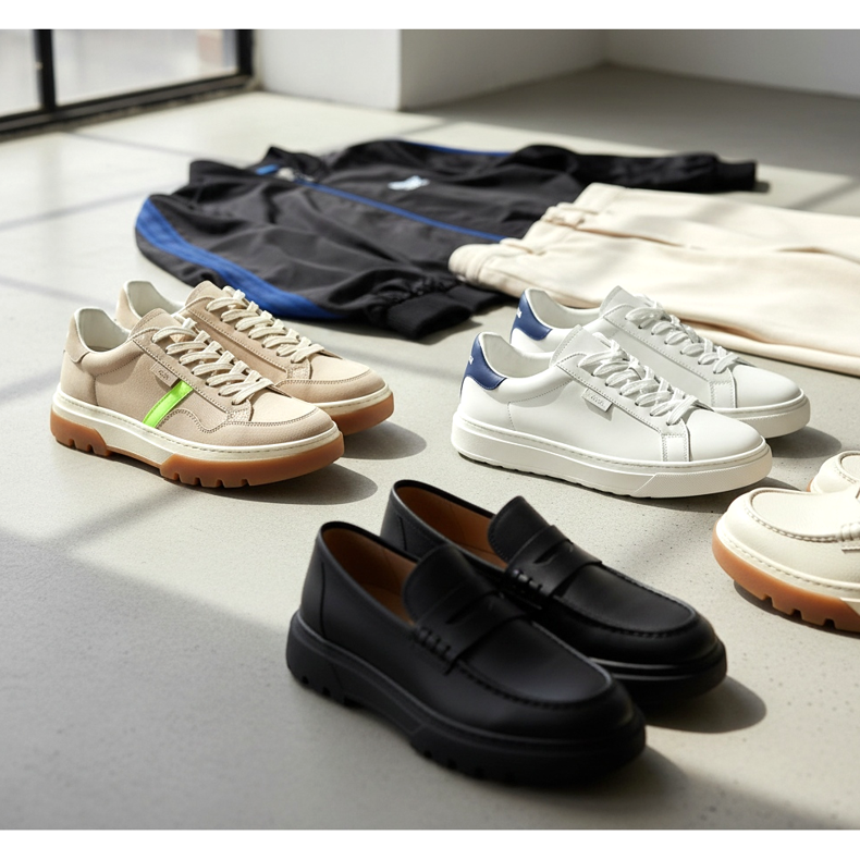 Bezšněrové nazouvací boty – zpopularizované koncem 90. let skejtovými značkami – jsou zpět v nové, elegantnější verzi. Často vyrobené z kůže nebo prémiového plátna, dnes vypadají spíše chytře než sportovně.