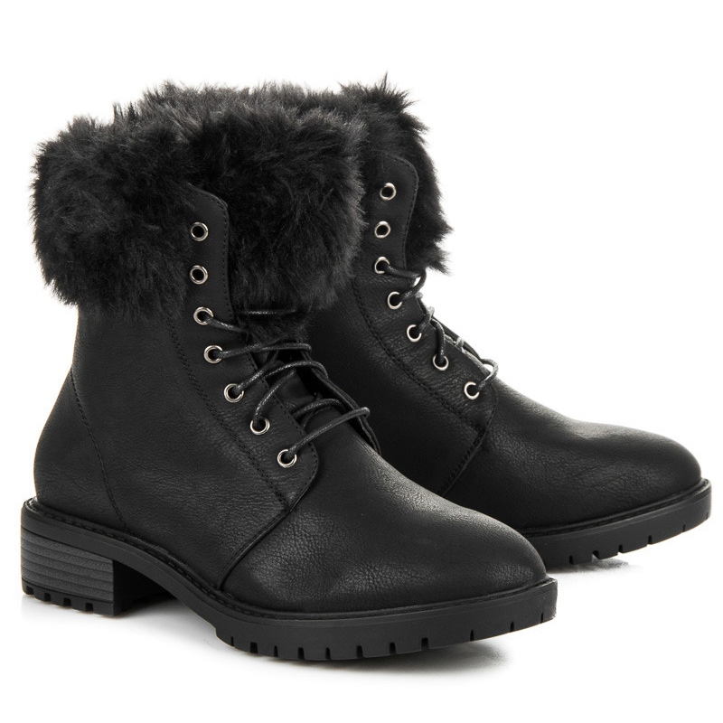 Queentina Boty S Kožešinou Na Svršku černý