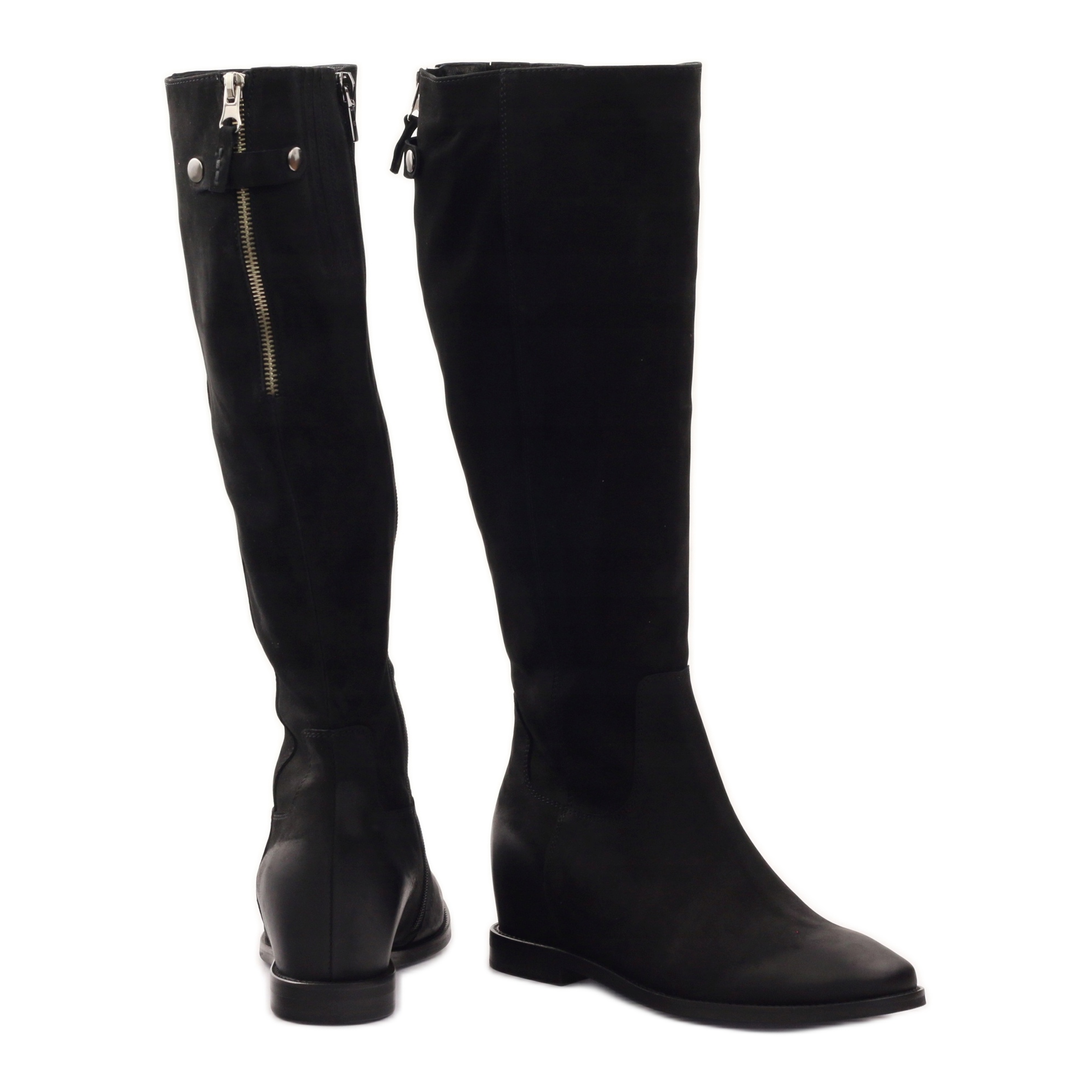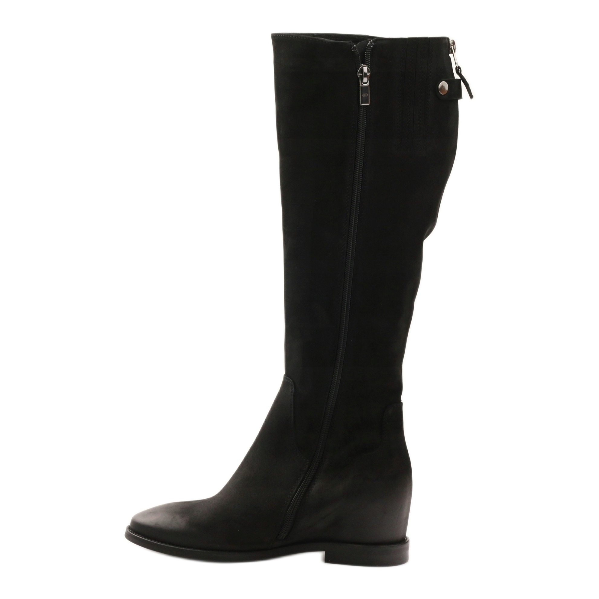 Kozačky se vyznačují skrytým klínkem o výšce 6,0 cm, který dodává decentní navýšení a zároveň zajišťuje stabilitu při nošení. Horní délka cca 40,0 cm krásně zvýrazní nohy, zatímco kulatá špička a pečlivé zakončení zaručí celodenní pohodlí.