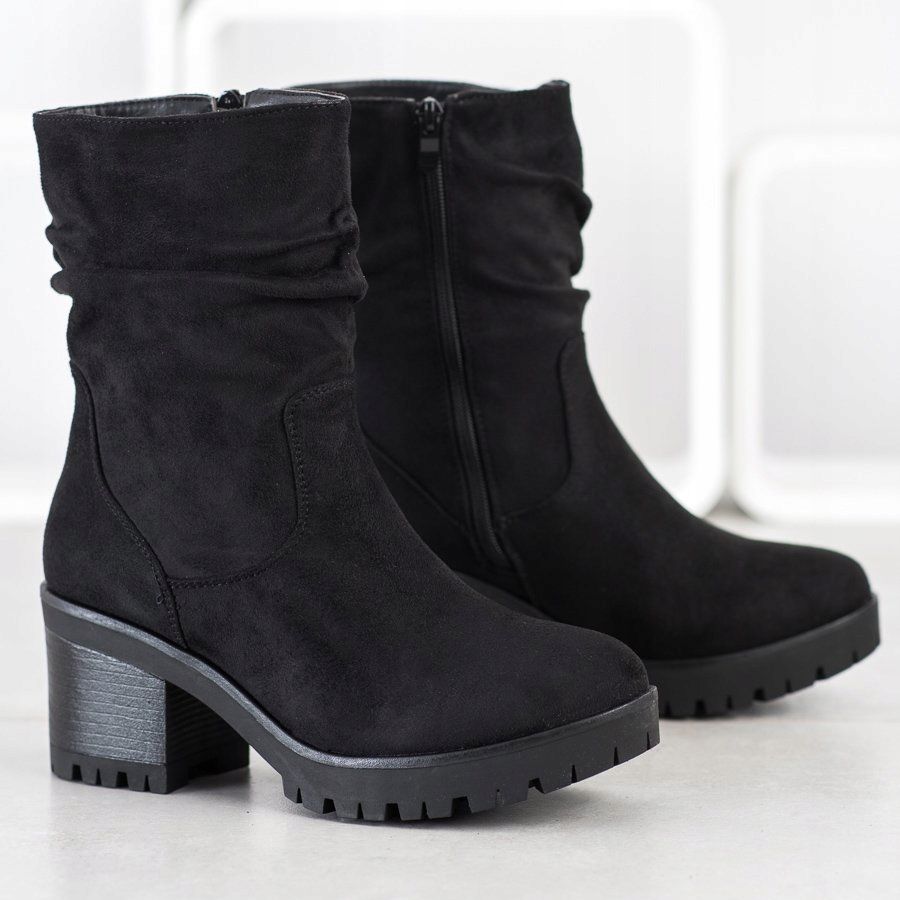 Objevte eleganci a pohodlí s kotníčkovými botami Flyfor s volánkovým svrškem v klasické černé barvě. Tyto ležérní dámské kozačky vyrobené z ekologické semišové kůže kombinují moderní design a praktičnost a dokonale ladí se zimním stylem.