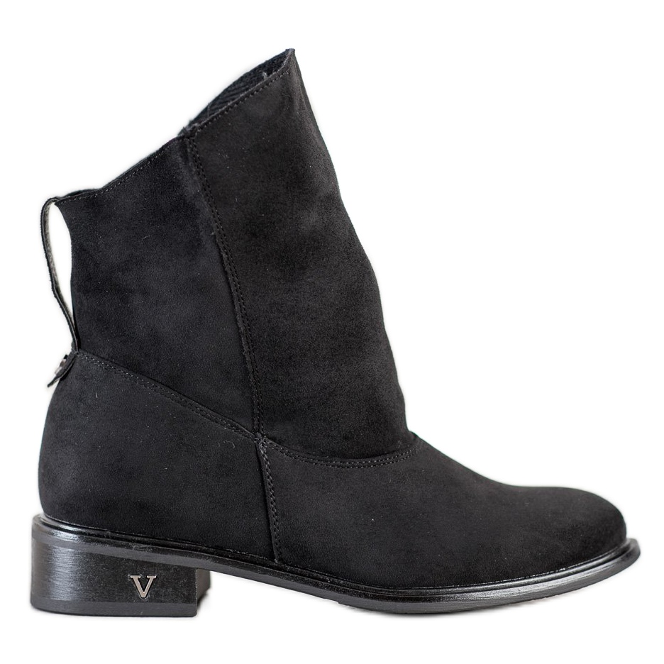 Kotníkové boty Gogo v černé barvě jsou perfektní volbou pro nadcházející podzimní a zimní dny. Vyrobeny z vysoce kvalitní ekologické kůže imitující semiš, spojují moderní design s komfortem nošení. Svršek vysoký 12-13 cm a široký 32 cm snadno padne na každou nohu a kotníkový střih dodává elegantní charakter.