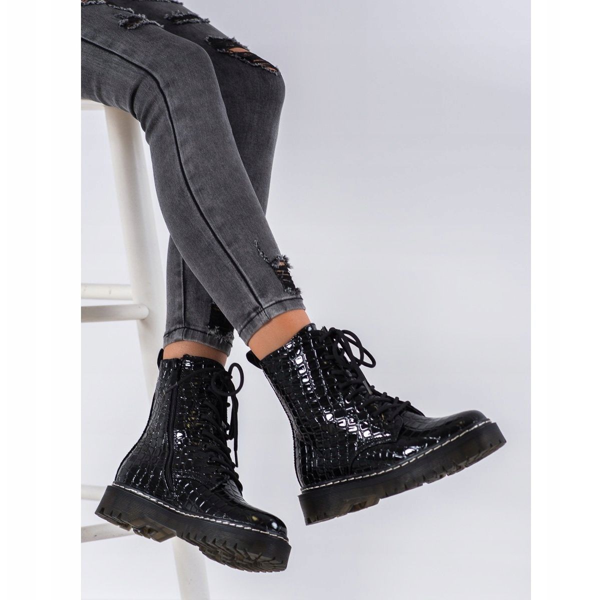 Bovver boty SHELOVET, vyrobené z vysoce kvalitní ekologické kůže, vypadají fenomenálně díky lakovanému povrchu, který přitahuje pozornost. Jejich kulatá špička a plochý 3 cm podpatek zajistí pohodlí při nošení a zateplení udrží vaše nohy v teple i v chladnějších dnech.