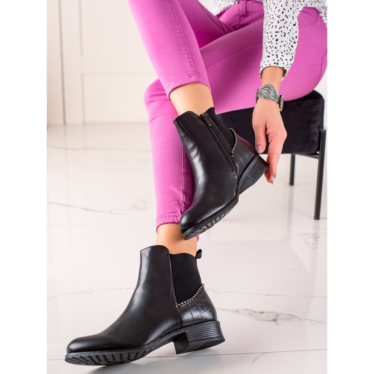 Objevte eleganci a pohodlí v chladnějších dnech s TRENDI černými kotníčkovými botami na zip. Tyto klasické Chelsea boty jsou dokonalým doplňkem jakéhokoli ležérního stylu a zajišťují módní vzhled a pohodlí při nošení.