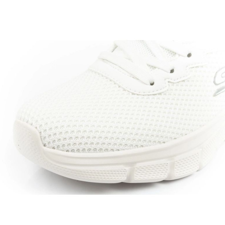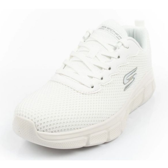 Bílá barva doplněná šedými akcenty a decentním logem značky Skechers dodává botám elegantní vzhled, díky čemuž jsou perfektním doplňkem mnoha oděvních kompletů.