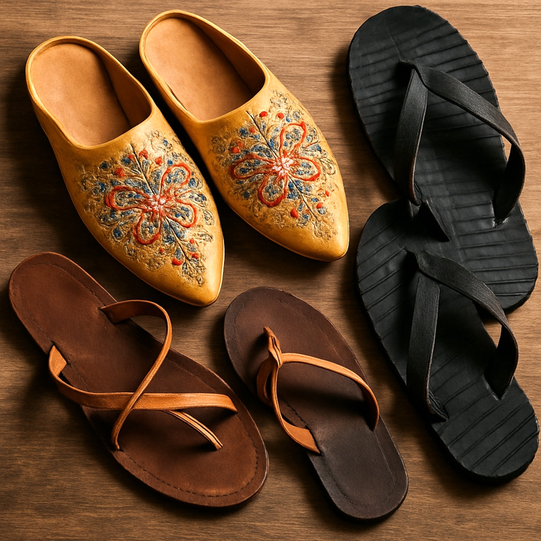Moderní příklad africké vynalézavosti – sandály vystřižené z ojetých pneumatik automobilů. Odolné, voděodolné a prakticky nezničitelné, se staly symbolem recyklace a udržitelného rozvoje. Původně vznikly z nutnosti, dnes si získávají oblibu jako ekologická alternativa k tradiční obuvi.