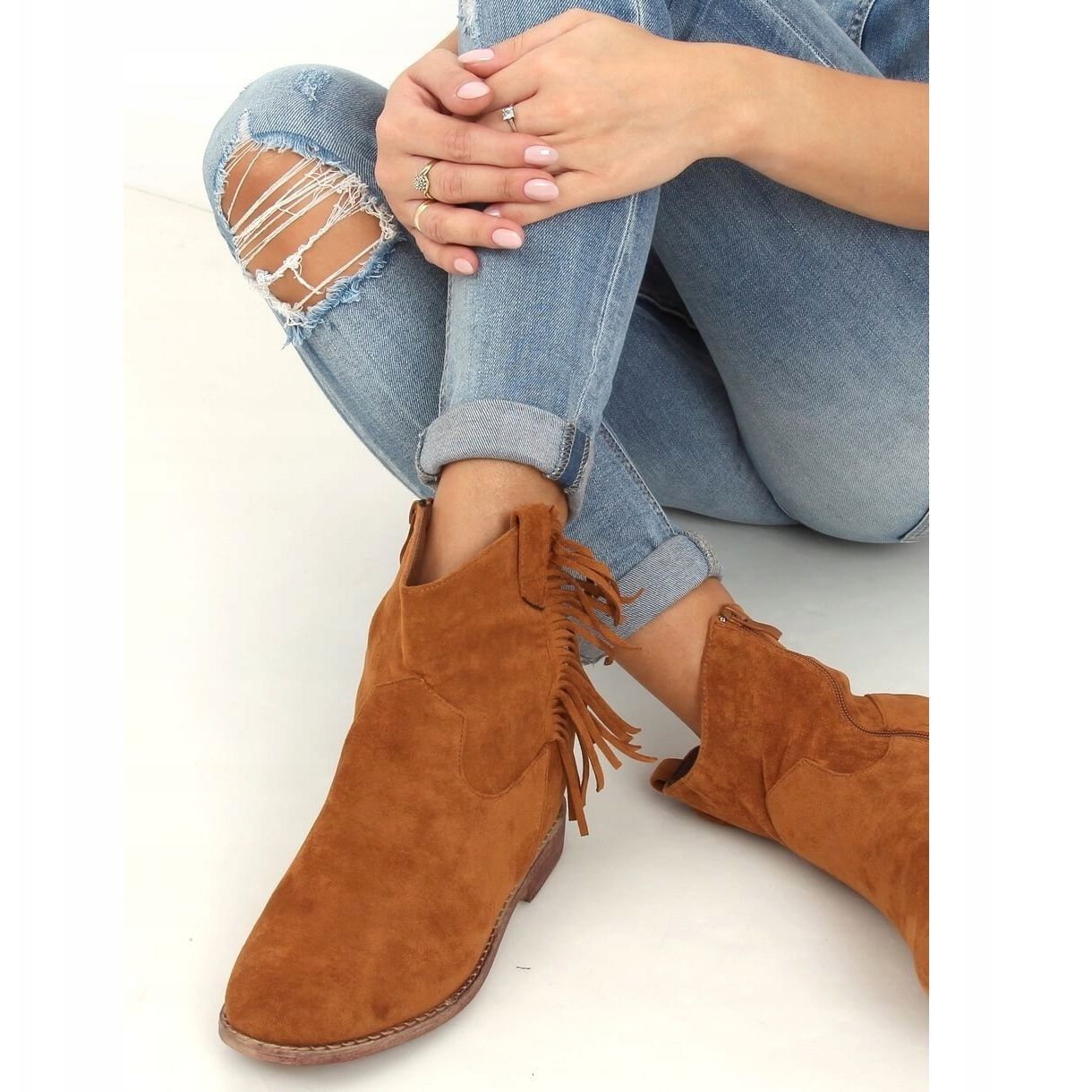 Svršek těchto kozaček je zdoben stylovými třásněmi, které jim dodávají jedinečný boho charakter. Díky praktickému zipu se velmi pohodlně nazouvají i svlékají. Kotníkové boty vyrobené z ekologického semiše nabízejí nejen elegantní vzhled, ale také šetrnost k životnímu prostředí.