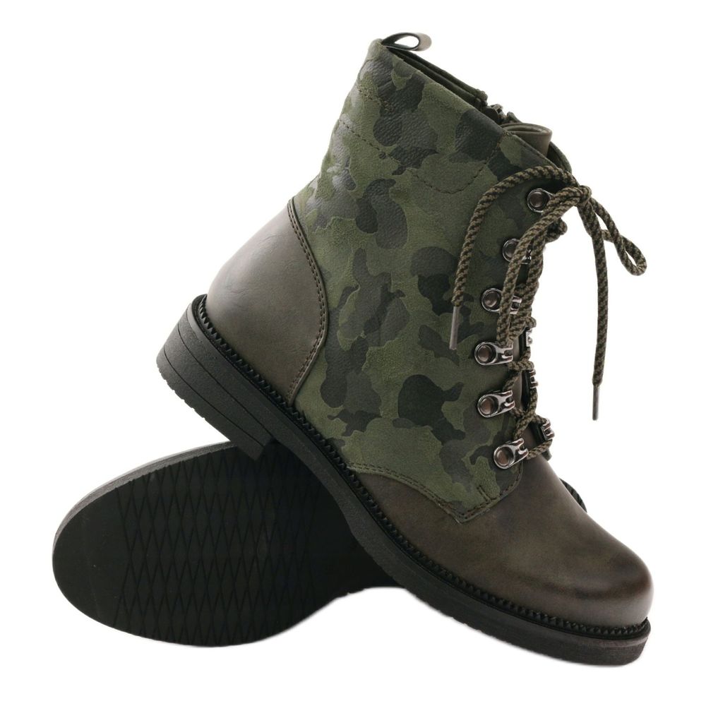 Stylový design v maskáčových odstínech znamená, že tyto boty nezůstanou lhostejné. Stabilní 3 cm vysoký plochý podpatek a 16 cm svršek jsou perfektní kombinací, která zajišťuje stabilitu a pohodlí při každodenních aktivitách. Kulatá špička dodává ležérní charakter a univerzální zelená barva ladí s nejrůznějšími styly.