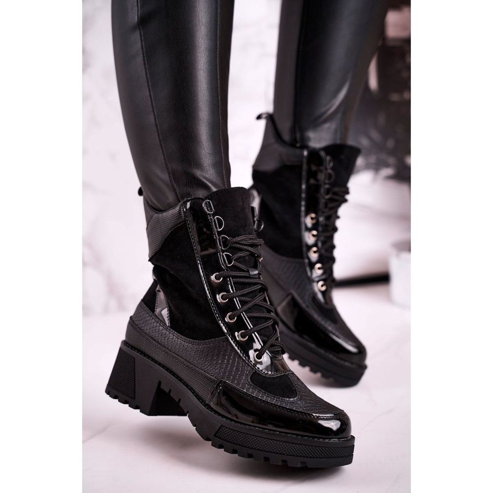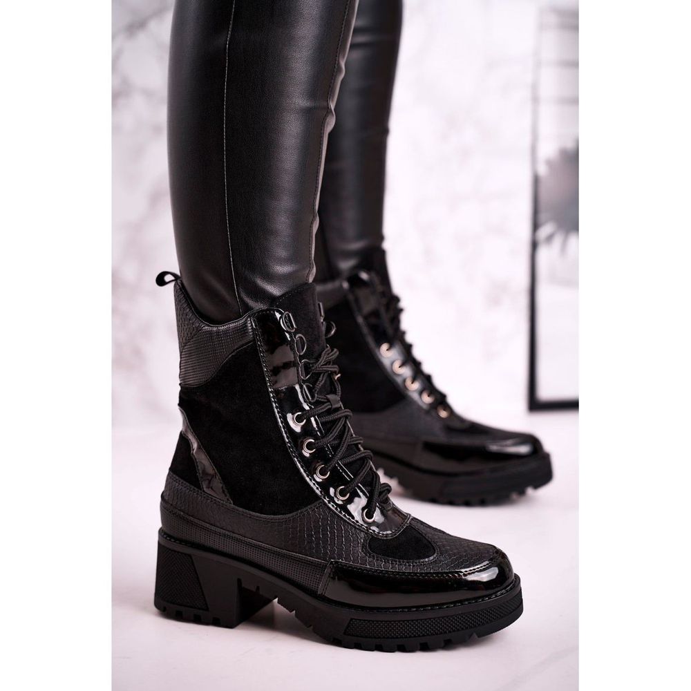 Tento model se vyznačuje horní výškou 18 cm, která dokonale zvýrazní kotník a dodá nohám štíhlý vzhled. Výška podpatku je 4,5 cm a další 2 cm vysoká platforma dělá boty stabilní a pohodlné při chůzi. Zapínání na tkaničky umožňuje snadné přizpůsobení noze a kulatá špička dodává lehkost.