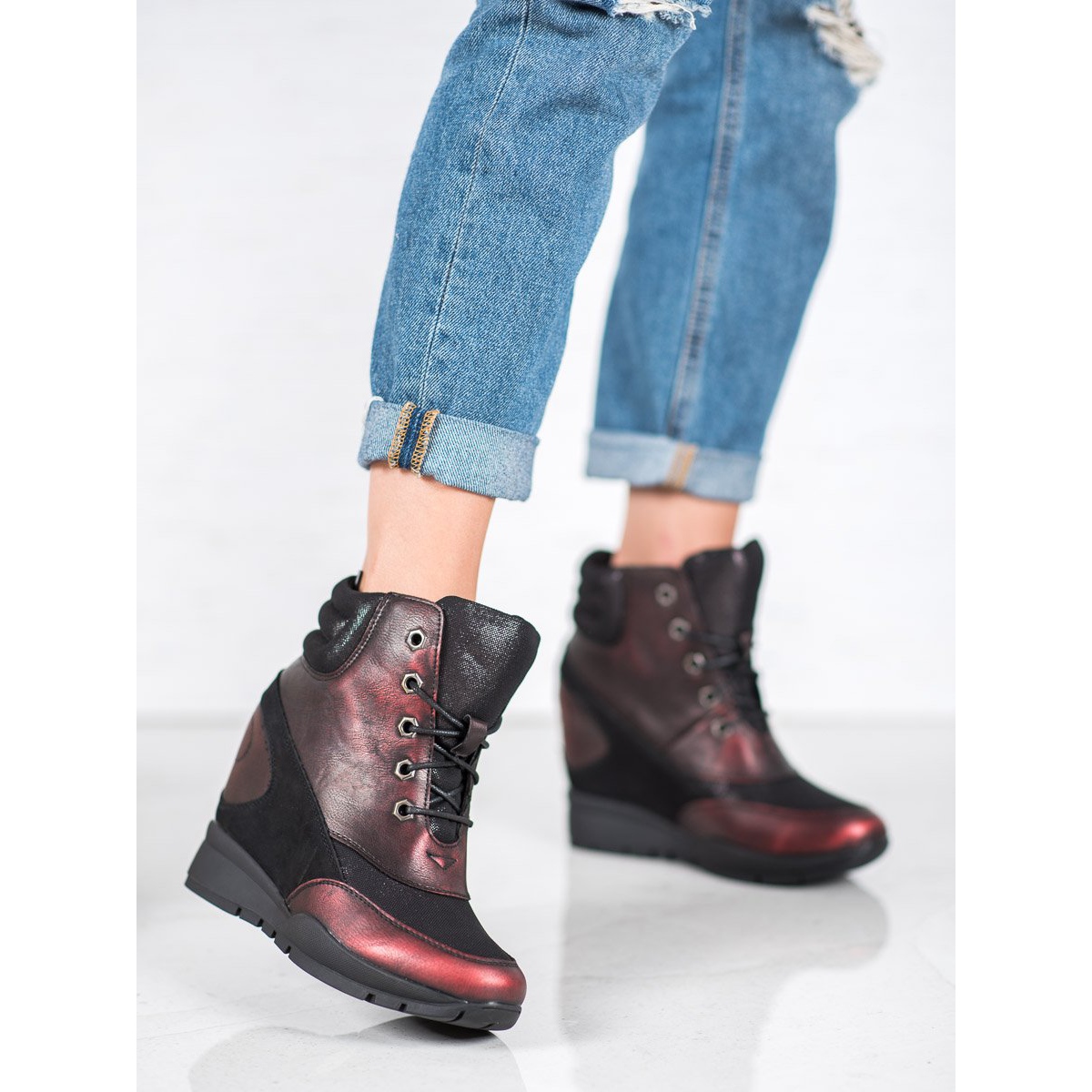 Vínově červené tenisky od Sergio Leone jsou perfektní volbou pro ženy, které hledají stylovou a pohodlnou každodenní obuv. Tyto boty vyrobené z vysoce kvalitní látky a ekologické kůže spojují eleganci a funkčnost. Díky své jedinečné barvě a módnímu střihu jsou tenisky skvělým doplňkem k ležérním stylům a dodávají jim výrazný šmrnc.