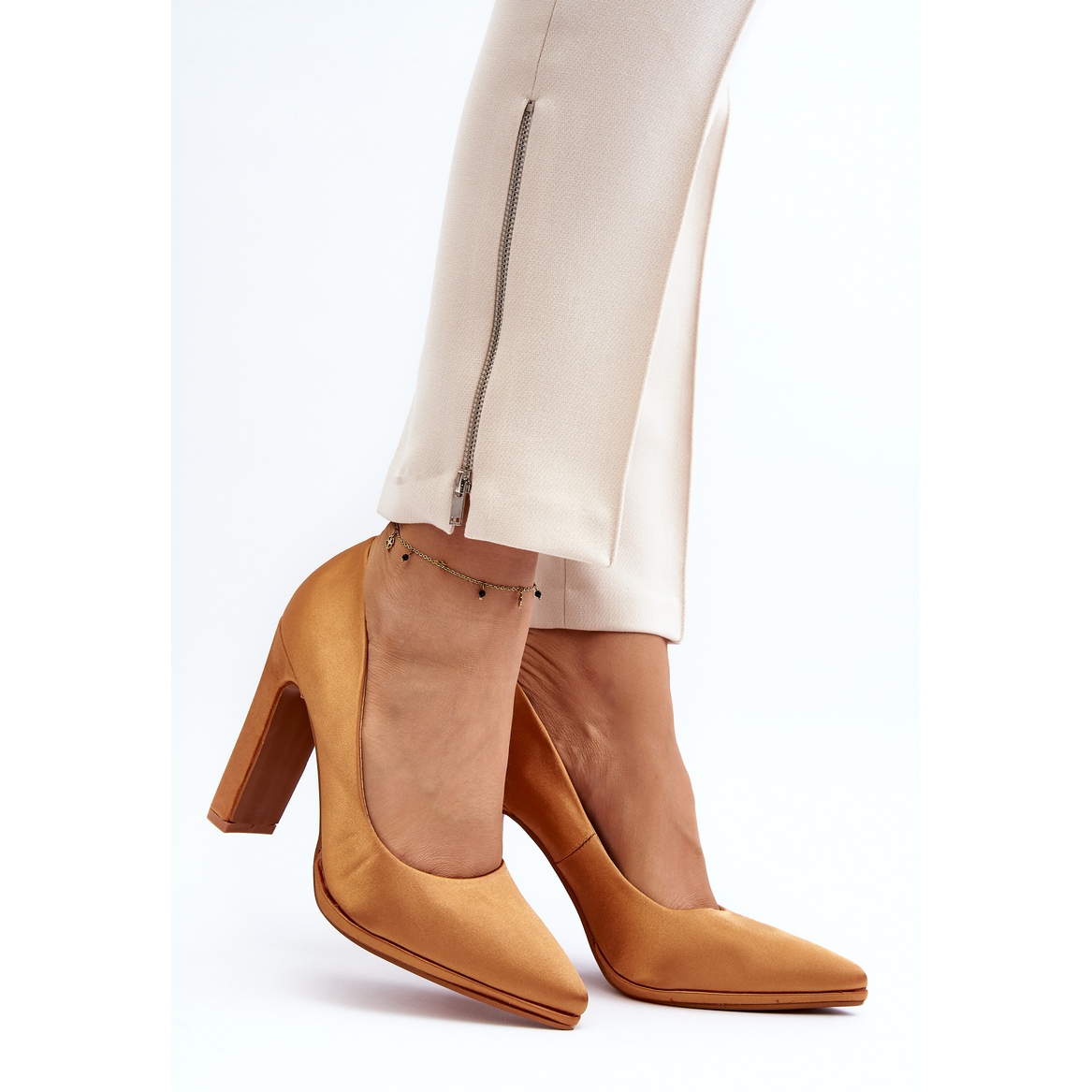 Materiál, ze kterého jsou lodičky vyrobeny, je kvalitní textilie, která dokonale imituje satén a dodává botám luxusní vzhled. Jedinečná barva „CAMEL“ navržená výrobcem je univerzální odstín hnědé, který se hodí k mnoha barvám a lze jej snadno integrovat do různých stylů.