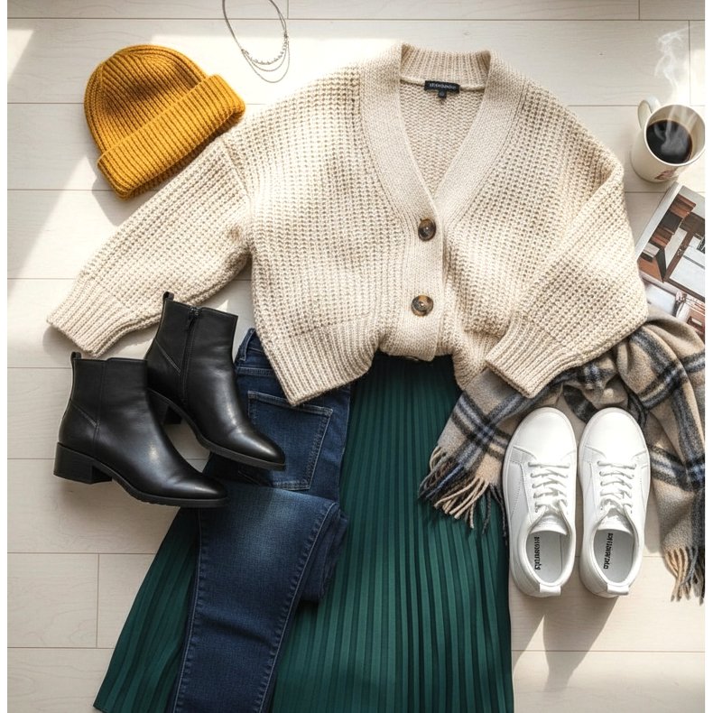 Stojí za to připomenout, že cardigan je extrémně univerzální prvek oblečení, který lze kombinovat s elegantním i ležérním stylem. Výběrem správných bot může stejný cardigan vypadat úplně jinak – od každodenního vzhledu až po elegantní outfit na rande nebo pracovní schůzku.