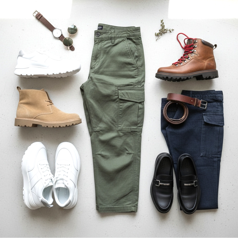 Cargo kalhoty jsou jedním z nejfunkčnějších kusů oblečení, které spojují praktičnost s módním vzhledem. Ať už zvolíte klasické cargo kalhoty s charakteristickými kapsami nebo elegantnější modely, správná obuv dokáže zcela změnit charakter celého stylingu. Boty ke cargo kalhotám by měly být především pohodlné a funkční, protože cargo kalhoty jsou spojeny s aktivním životním stylem.