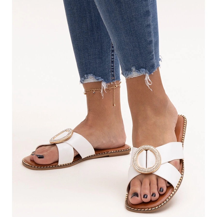 Jejich kulatý nos zajišťuje svobodu pohybu a výška pata na úrovni 1 cm je činí ideální pro dlouhé nošení, zatímco béžová gumová podešve zaručuje vynikající adhezi a stabilitu. Další výhodou jsou krásně zdobené přezky se zirkony, které přidávají celou jemnou nádheru a eleganci, díky čemuž jsou tyto kočky perfektní doplněk ke každé letní stylizaci.