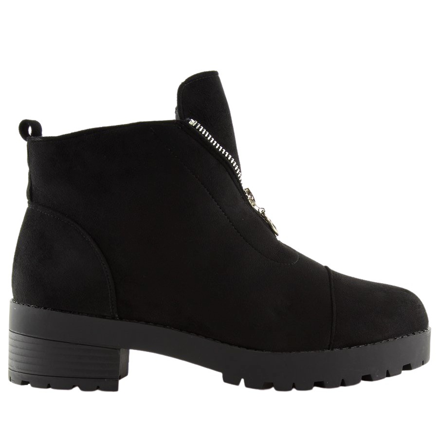 2017-3 Černé kotníkové boty s vysokou podrážkou jsou perfektním doplňkem každého dámského šatníku. Tyto elegantní a stylové boty vyrobené z ekologického semiše kombinují klasiku s moderním designem. Silnější, paspartovaná podrážka zajišťuje pohodlí a stabilitu a výška 4,5 cm je předurčuje pro každodenní použití.