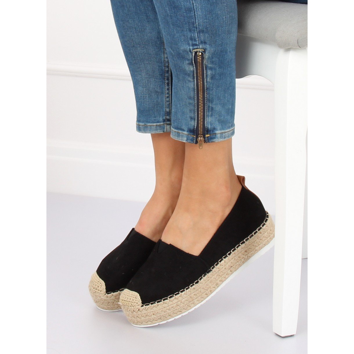 Černé espadrilky BL247 Černé s vysokou podrážkou jsou perfektní volbou pro ženy, které chtějí vypadat módně a cítit se pohodlně. Tyto elegantní boty kombinují styl a pohodlí a jejich ekologický semišový povrch jim dodává jedinečný charakter. Barevný provázek a jemný detail na zadní straně upoutají pozornost a dodají celku jedinečné kouzlo.