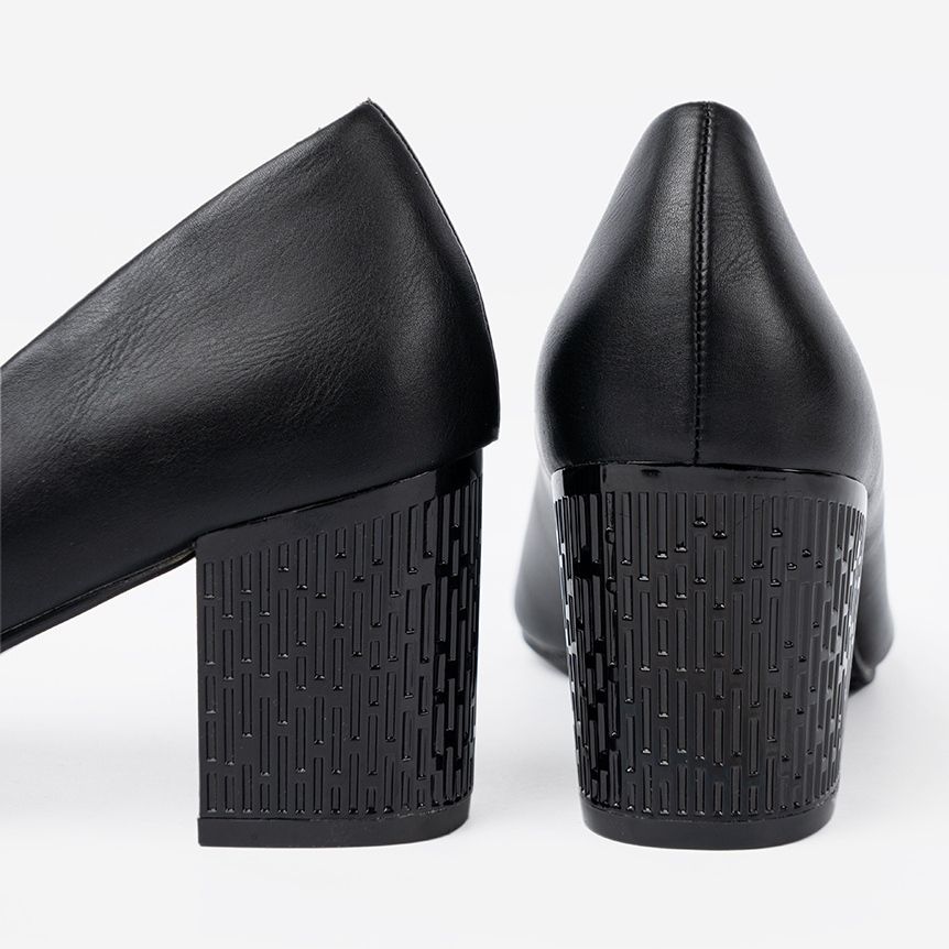 Čerpadla jsou vyrobena z vysoce kvalitní napodobování pokožky, která vypadá nejen stylově, ale také zajišťuje trvanlivost. Interiér obuvi skrývá příjemnou dotykovou vložku přírodní kůže, která zaručuje pohodlí nošení po celý den. Díky vložení je nasazení a odstranění bot velmi snadné a postavená pata přidává stabilitu.