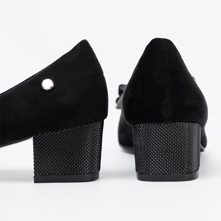 Goodinová čerpadla se rozlišují černou, která je univerzální a odpovídá mnoha stylům. Vyrobeno z vysoce kvalitní napodobování kůže, zajišťují trvanlivost a snadnou údržbu. Interiér bot je částečně lemován přírodní kůží, která zaručuje pohodlí nošení po celý den.