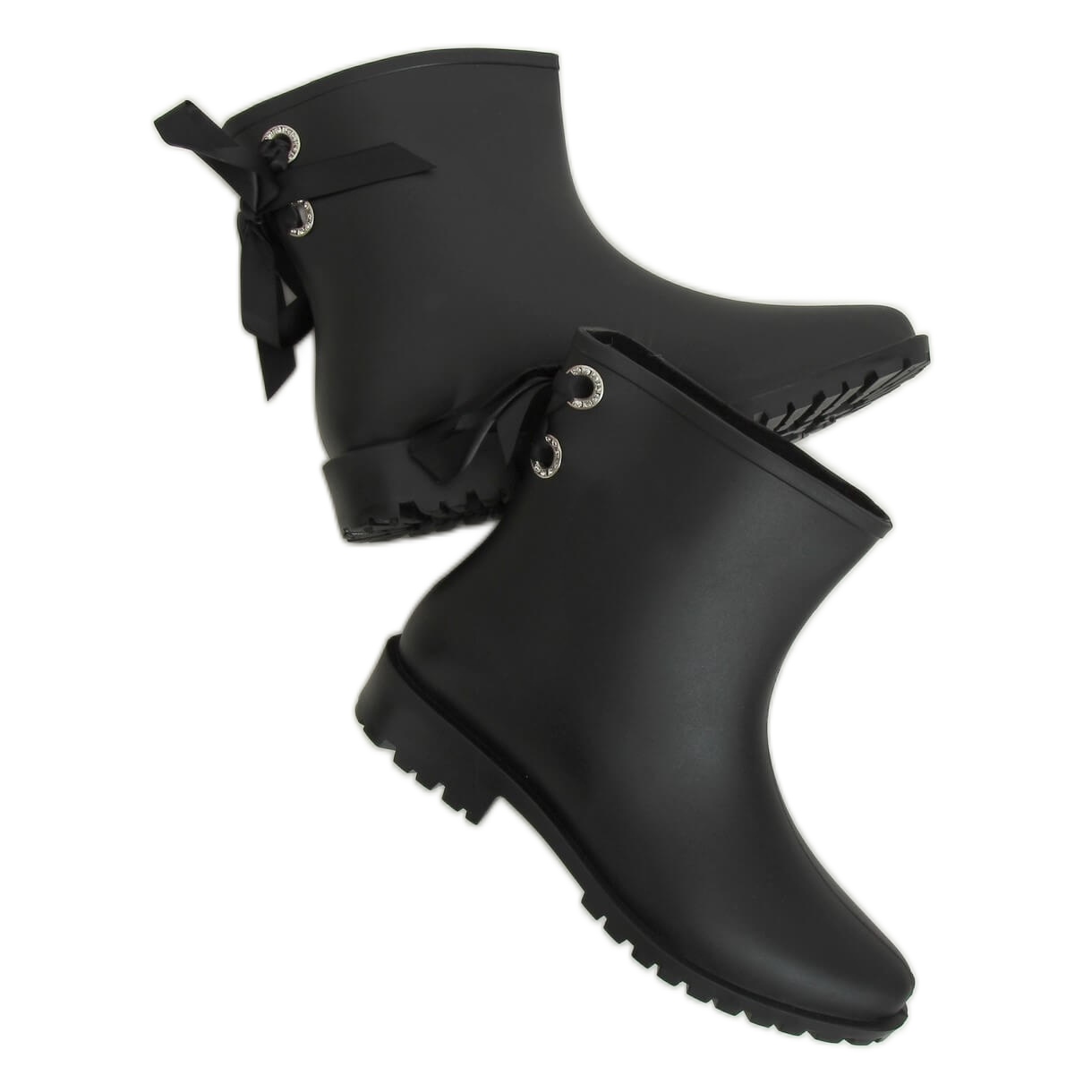 Inna marka Černá DC12 Černé dámské galoše s mašlí