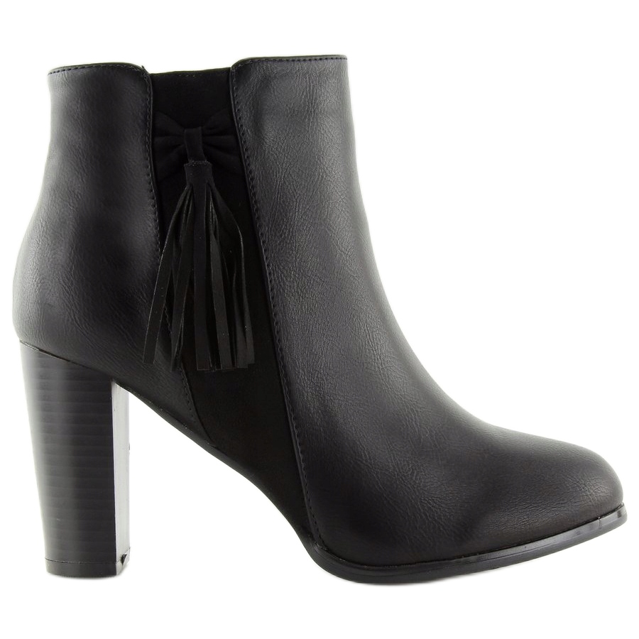 Objevte eleganci a pohodlí v jednom díky kotníkovým botám F880 na vysokém podpatku v černé barvě. Tyto dámské kotníkové boty s podpatkem o výšce 8,5 cm jsou perfektním doplňkem každého stylingu a dodávají mu jedinečné kouzlo. Decentní zdobení v podobě mašle s třásněmi umístěnými na boku svršku upoutá pozornost a doplňuje celek, takže vaše nohy vypadají dlouhé a štíhlé.