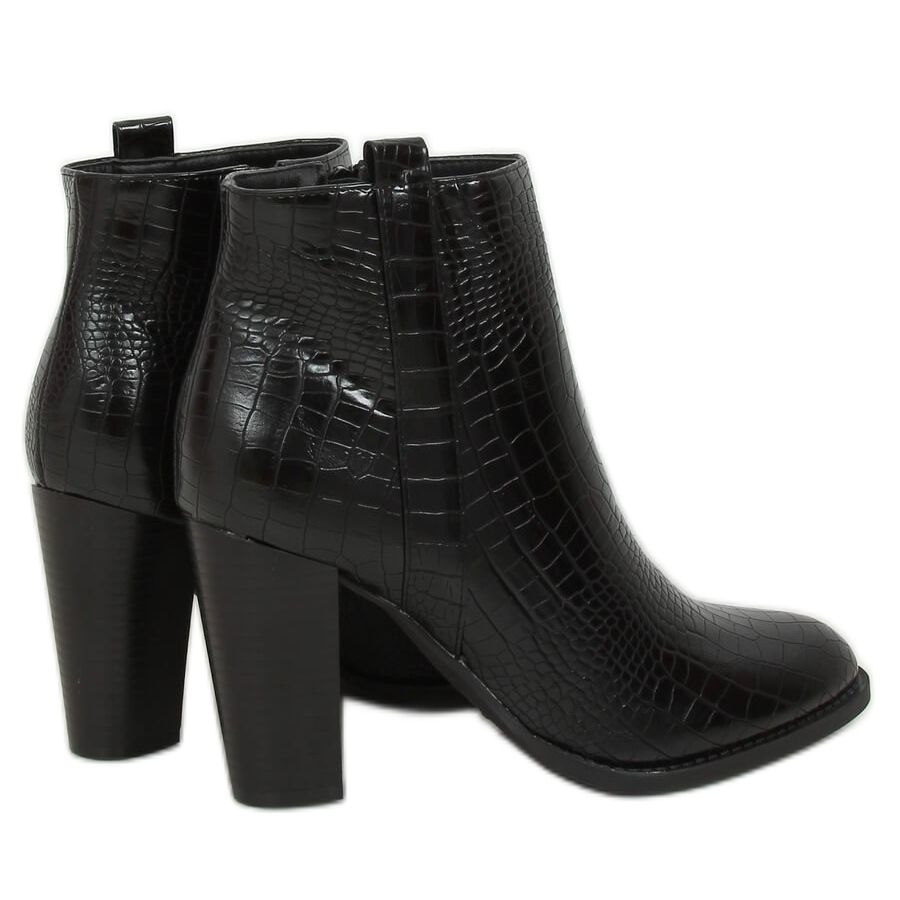 Představujeme mimořádně stylové a elegantní černé kotníkové boty na vysokém podpatku, které dokonale ladí s aktuálními módními trendy. Model s motivem hadí kůže je ideální pro ženy, které oceňují originalitu a extravaganci. Díky kvalitnímu zpracování z lesklé ekologické kůže a pohodlnému bočnímu zipu jsou boty nejen atraktivní, ale také praktické při každodenním používání.