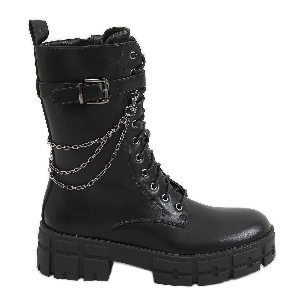 Černá hladká povrchová úprava a působivý řetízkový přívěsek a přezka jim dodávají jedinečný charakter, ideální pro ležérní i elegantnější styly. Vnitřek kozaček je podšitý jemným kožíškem, díky kterému se pohodlně nosí i v chladnějších dnech.