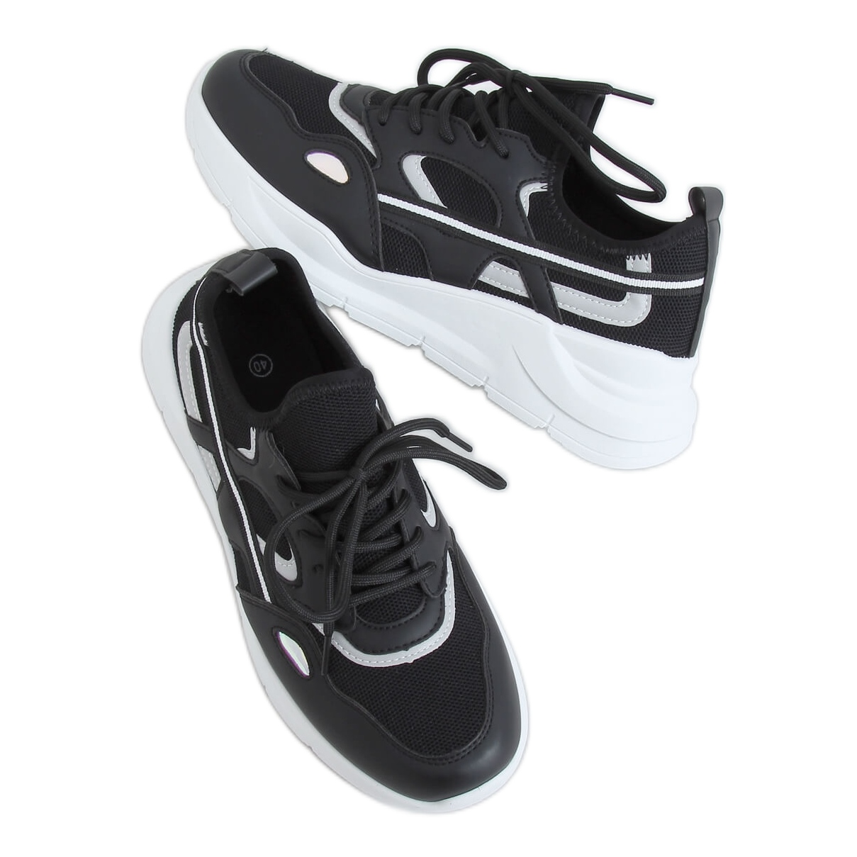 Black Sports Shoes B0-560 Black-A Stylová sezóna. Šněrovací ženské tenisky spojující městské pohodlí s módním přízvukem kouzla: nízký, nízký střih s velkolepou 4 cm platformou, která opticky prodlužuje nohu a dává sportovní stylingový charakter.