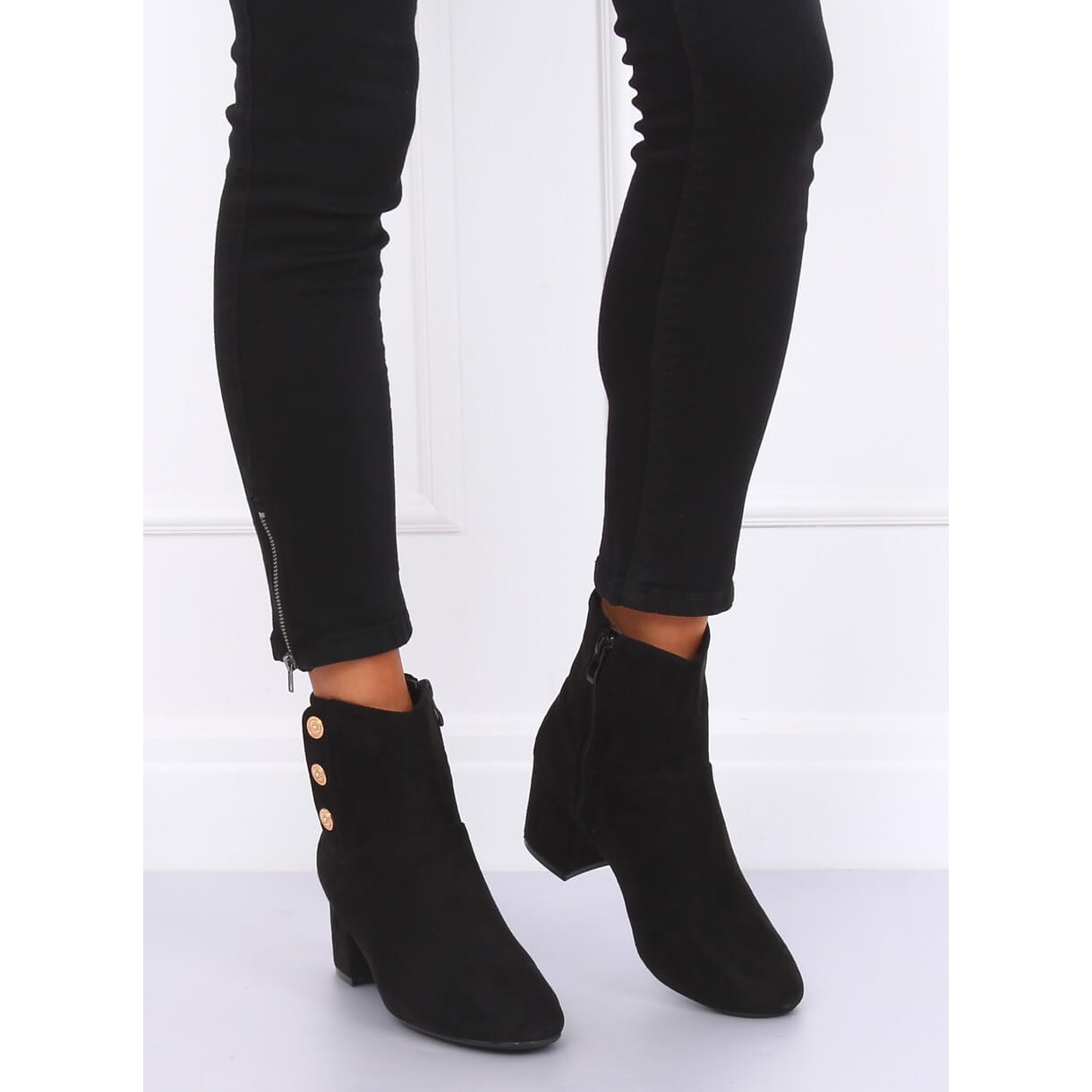 Černé kotníkové boty na vysokém podpatku YL51 Black jsou perfektní volbou pro každou ženu, která si cení elegance a pohodlí při každodenním nošení. Tyto klasické kozačky vyrobené z vysoce kvalitního ekologického semiše potěší svou jednoduchostí a jemnými detaily, jako jsou ozdobné zlaté knoflíky umístěné na boku svršku.