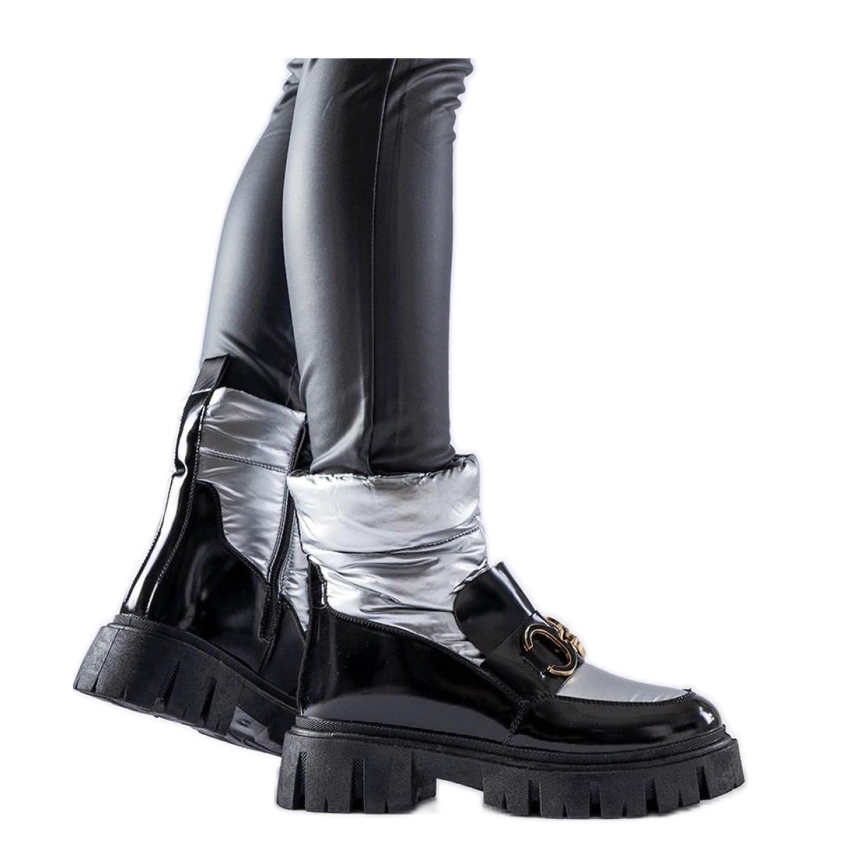 Černé a stříbrné valené sněhové boty jsou perfektním řešením pro každou ženu, která chce kombinovat styl s funkčností v zimních podmínkách. Tyto elegantní boty kotníku jsou charakterizovány jedinečným designem a kombinují módní černou barvu s jemnými stříbrnými akcenty.