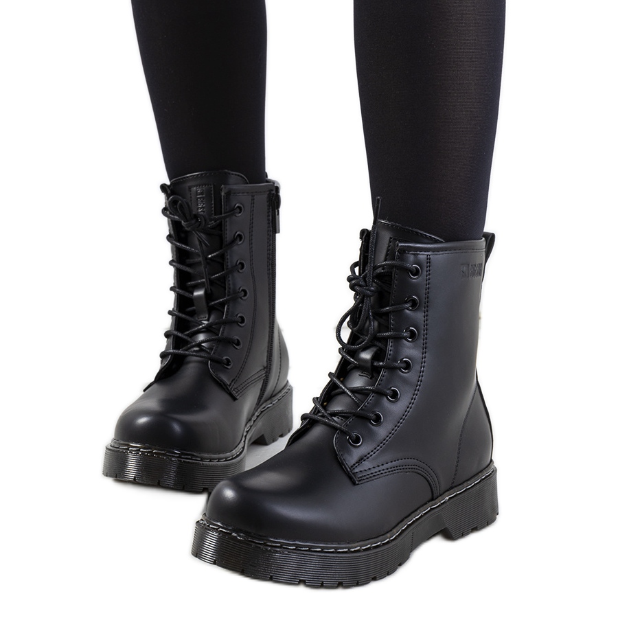 Černé bovver boty Big Star II274105, ideální pro každodenní soupravy i odvážnější styly, nesmí chybět v žádném dámském šatníku. Zabalené v originální krabičce jsou skvělé i jako dárek. Nečekejte a pořiďte si pár, který dodá vašemu stylu charakter!