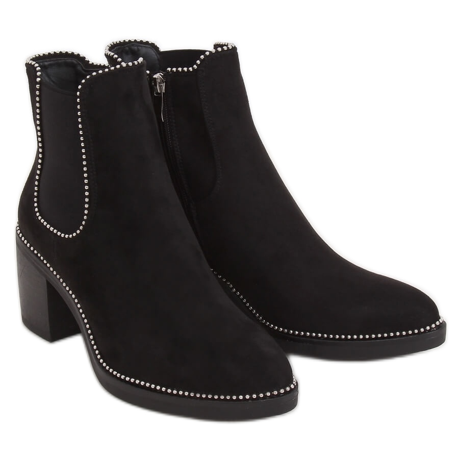 Objevte eleganci a pohodlí, které nabízejí černé Chelsea boots 15672 Black. Tyto dámské semišové kotníkové boty vynikají nejen stylovým střihem, ale také širokým 7 cm vysokým podpatkem, který dodává ženský půvab a zvýrazňuje postavu. Jemné stříbrné kuličky kolem gumových vložek a podešví jim dodávají jedinečný charakter, díky čemuž jistě upoutají pozornost.