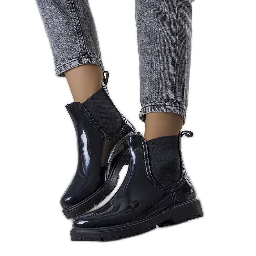 Black Kemi Wellies - praktická a minimalistická obuv pro deštivé dny. Vyrobeno z vysoce kvalitní gumy s flexibilními vložkami, které usnadňují nasazení, poskytují ochranu před vlhkostí a snadným čištěním. Stylová, jednotná černá barva způsobuje, že se hodí k mnoha stylům.