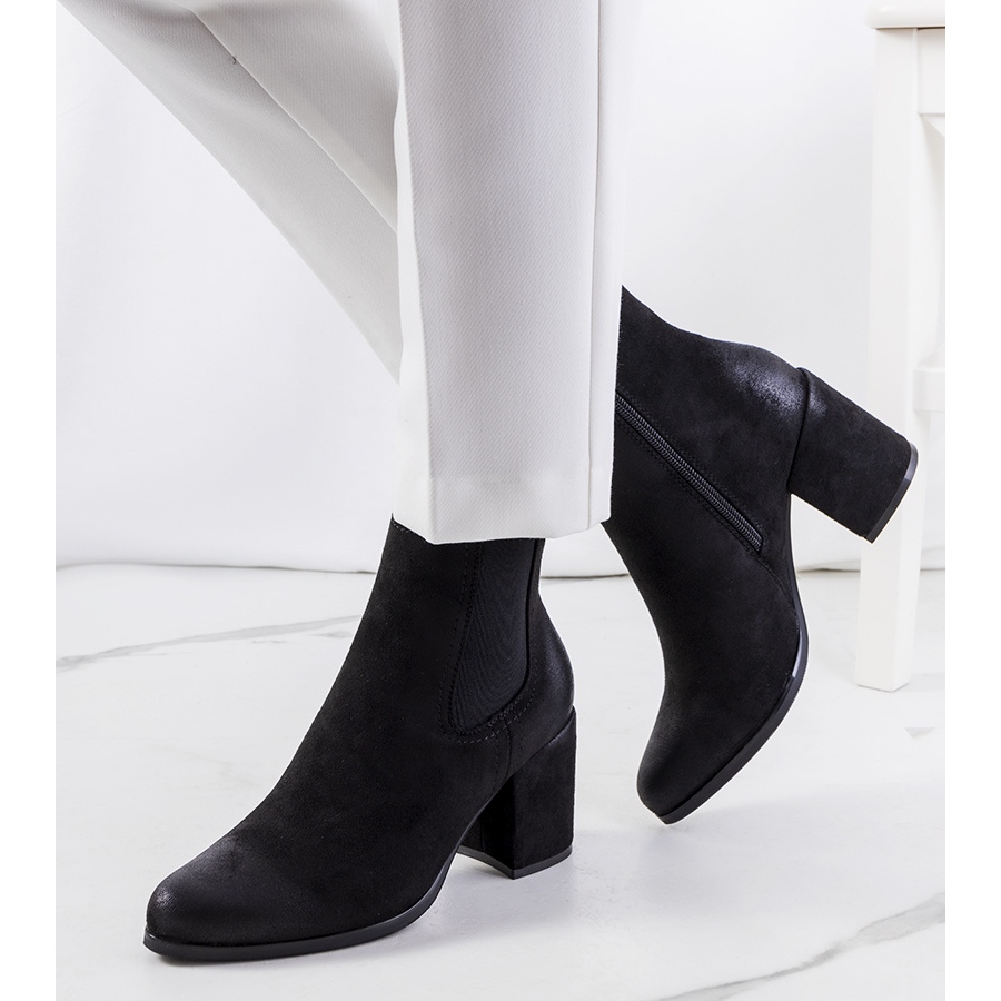 Klasické, ženské boty vyrobené z ekologické kůže s semišovou texturou. Připevněný zipem zevnitř, zabudovaný na stabilní, střední post (výška pata: 7 cm). Mírně izolované uvnitř, ideální pro chladnější dny. Standardní číslování - Vyberte prosím svou běžnou velikost.
