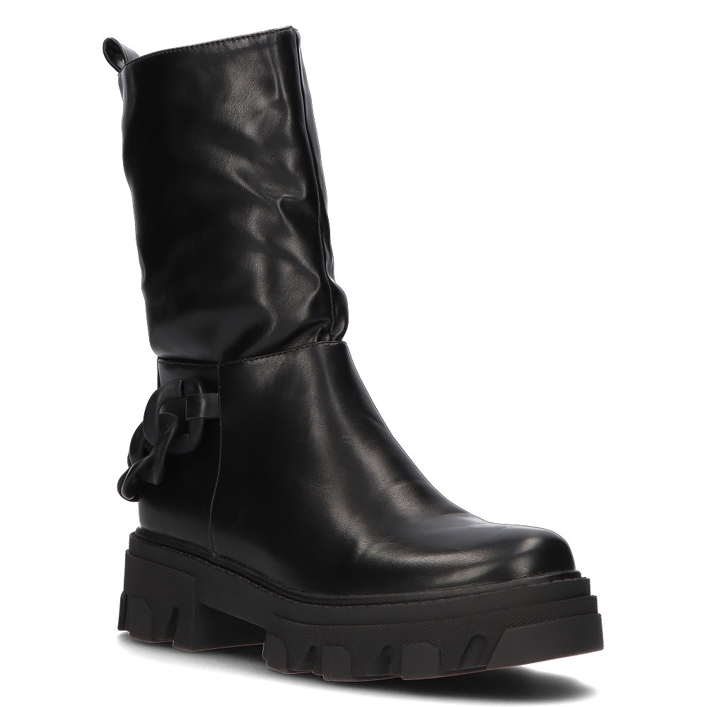 Tyto kozačky jsou také skvělou volbou pro ženy, které mají rády doplňky, protože jejich elegantní design je obohacen o jemný řetízek, který jim dodává jedinečný charakter. Bez vzoru v klasické černé barvě budou ladit s mnoha styly – od ležérních až po elegantnější.