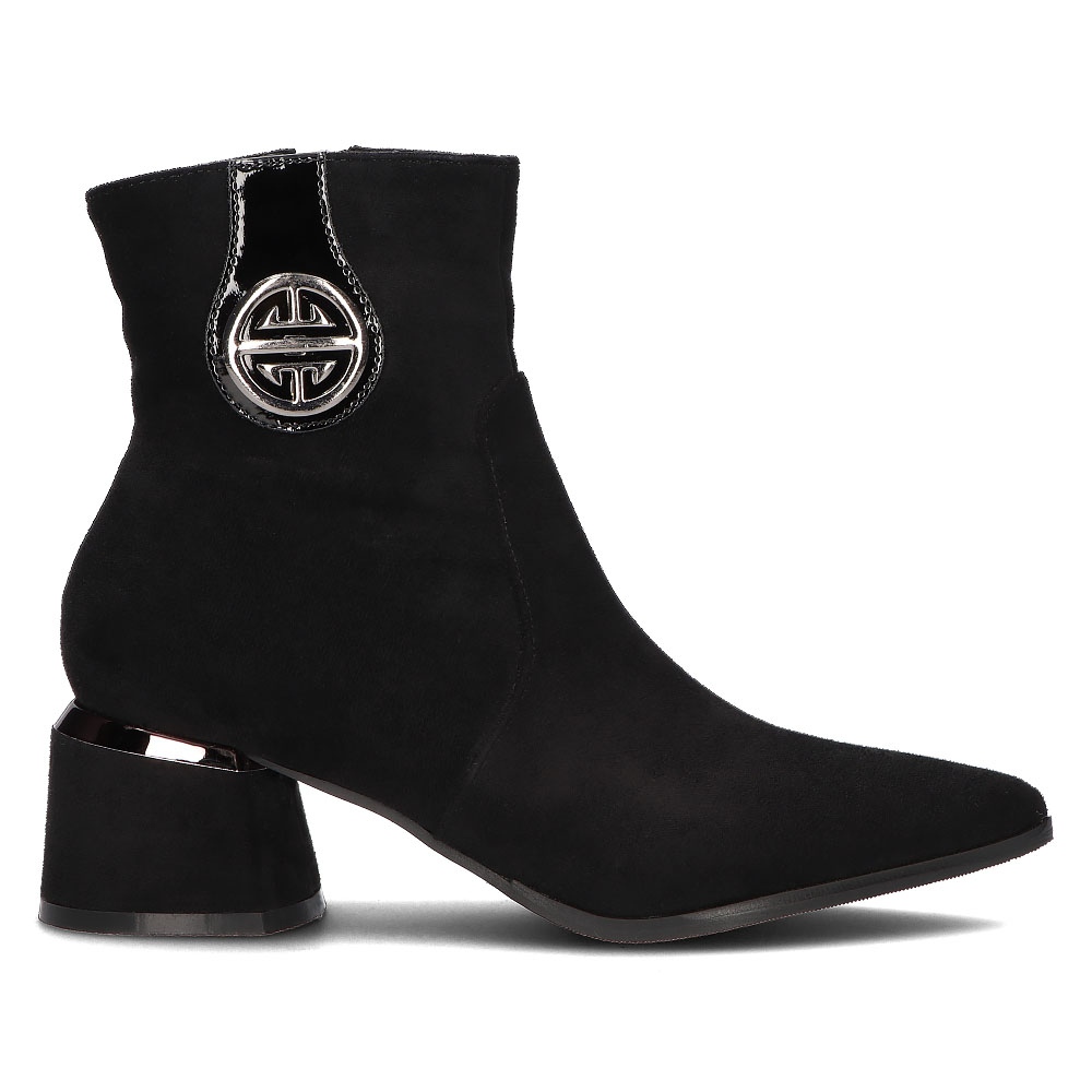 Tyto kotníkové boty vyrobené z vysoce kvalitních materiálů se svrškem 13,5 cm dosahují nad kotník, což zaručuje skvělou podporu a pohodlí při nošení. Špičatá špička a zapínání na zip jsou detaily, které zdůrazňují jejich elegantní design.