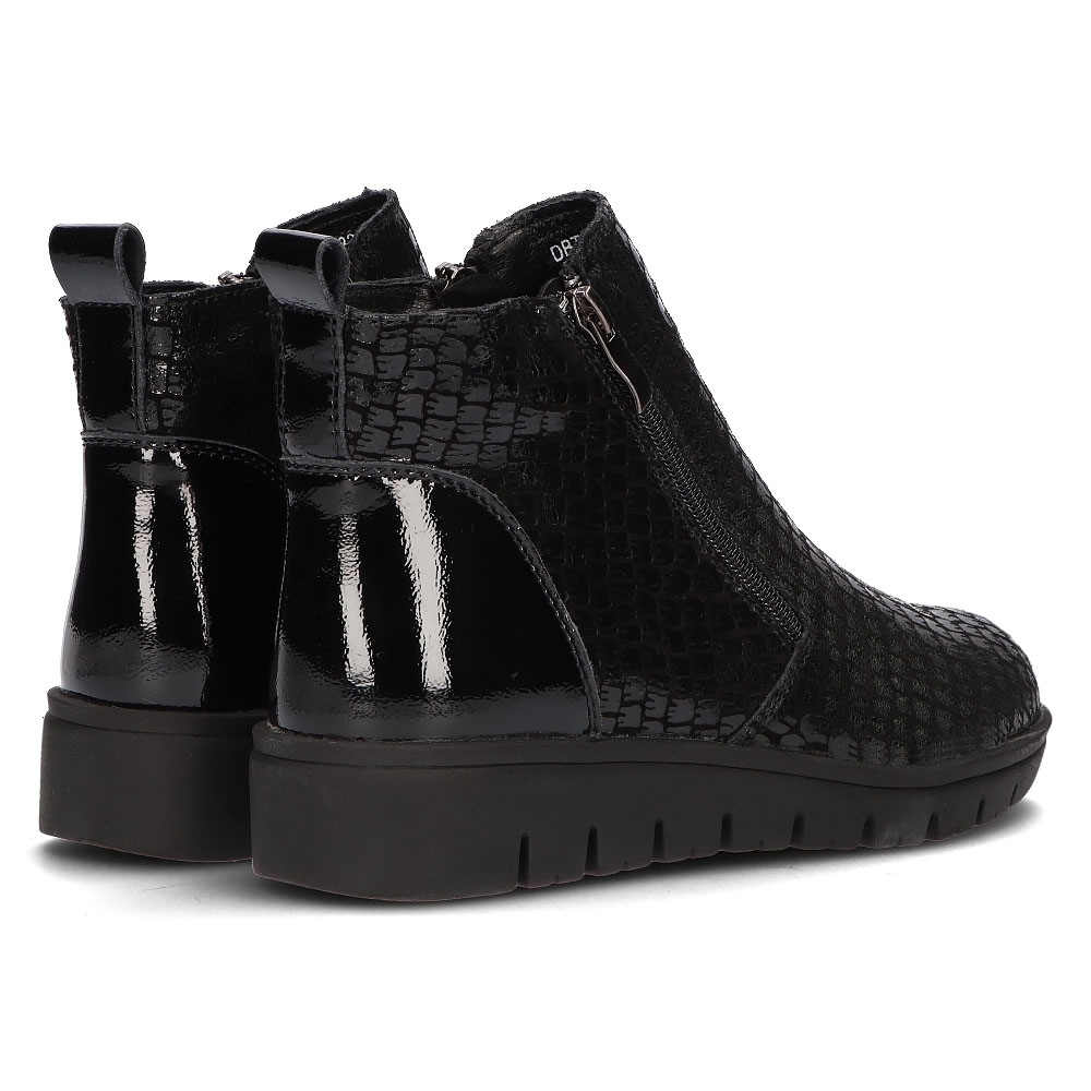 Boty vyrobené z nejkvalitnější přírodní kůže se vyznačují kulatou špičkou a pohodlným zapínáním na zip, díky kterému se snadno nazouvají. Výška kotníku a optimální svršek s obvodem 29 cm zajistí dokonalé přizpůsobení noze a komfort zateplení umožňuje nošení v chladnějších dnech.