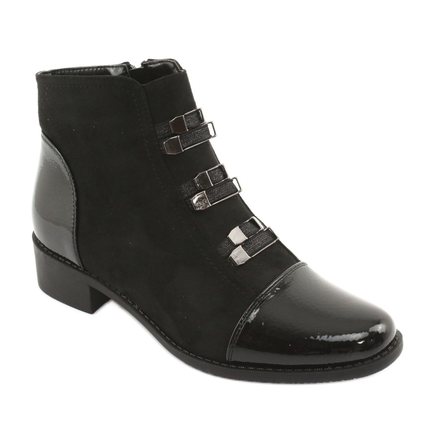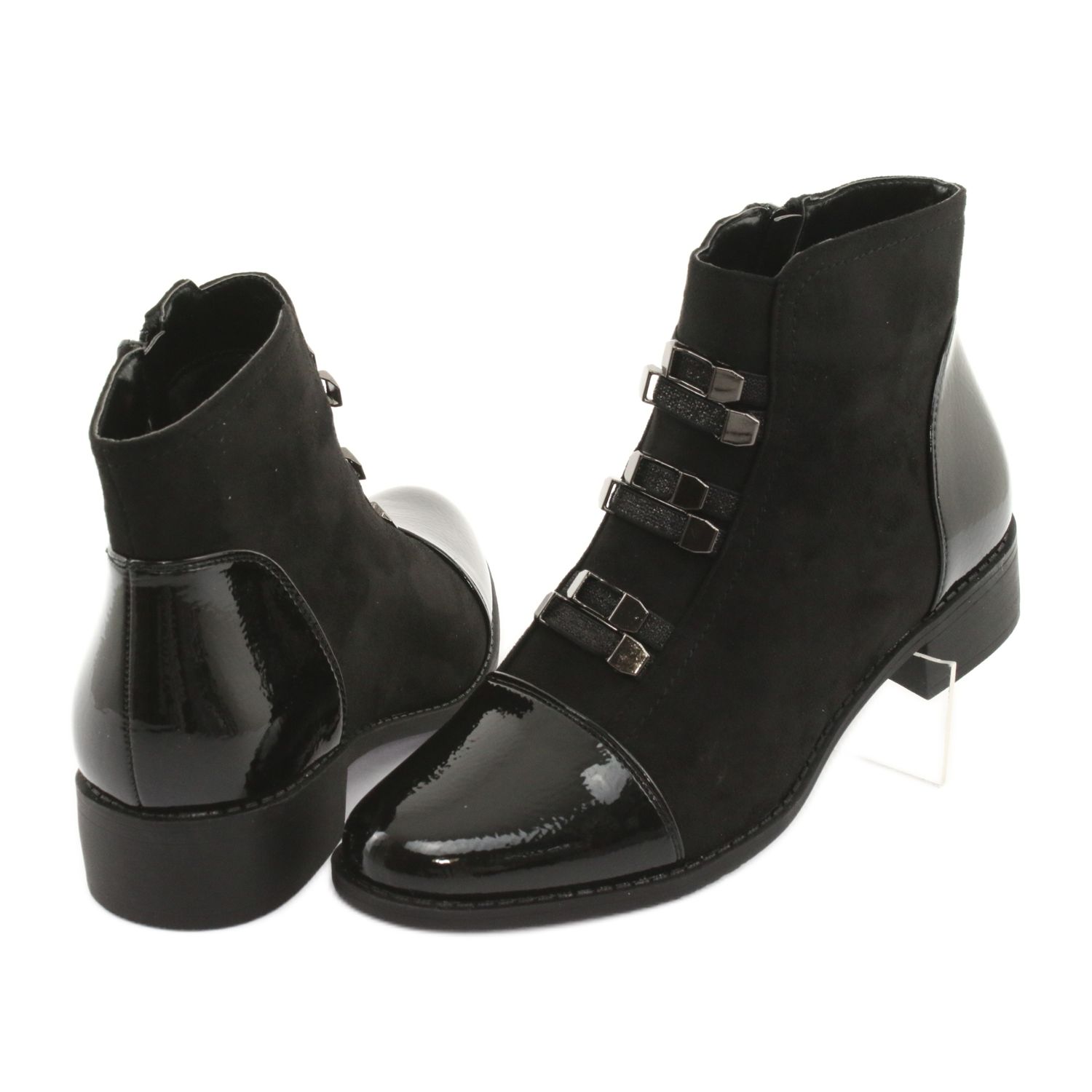Černé boty Chelsea značky M.Daszyński jsou perfektní obuví, která kombinuje eleganci s pohodlím. Tyto boty vyrobené z vysoce kvalitní ekologické kůže v kombinaci se semišovým povrchem a lakovanou přední částí přitahují pozornost svým šik stylem. Díky jejich klasické černé barvě se perfektně hodí k různým stylům, od ležérních až po formálnější.