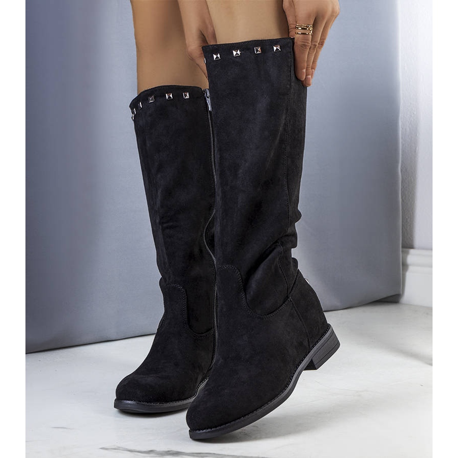 Kozačky mají kulatou špičku a jsou vybaveny praktickým zipem, díky kterému se snadno nazouvají. Vysoký klín o výšce 5,5 cm dodává nejen eleganci, ale také zajišťuje stabilitu při chůzi. Podrážka z gumy zaručuje přilnavost a černá barva boty jistě usnadní vytváření různých stylů.