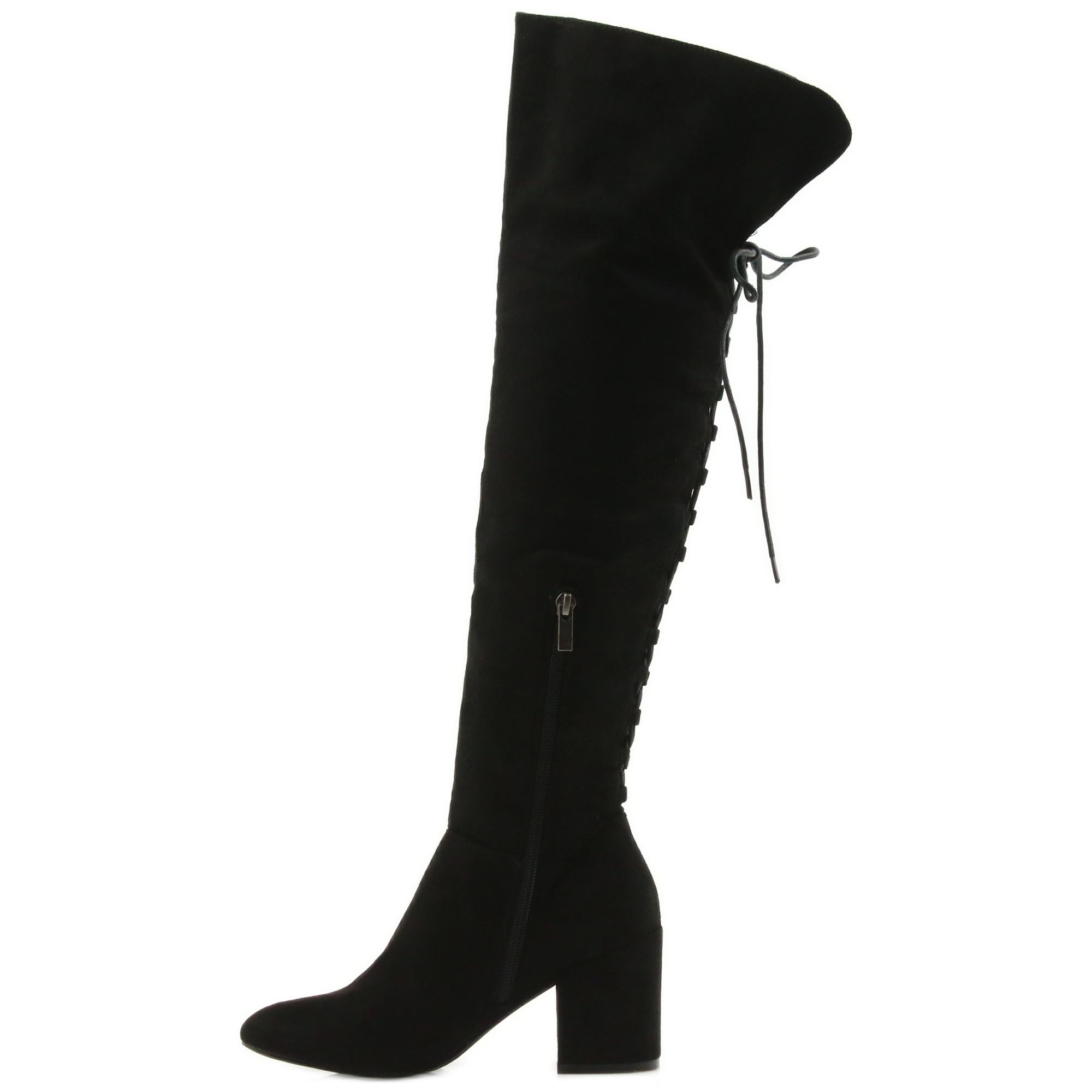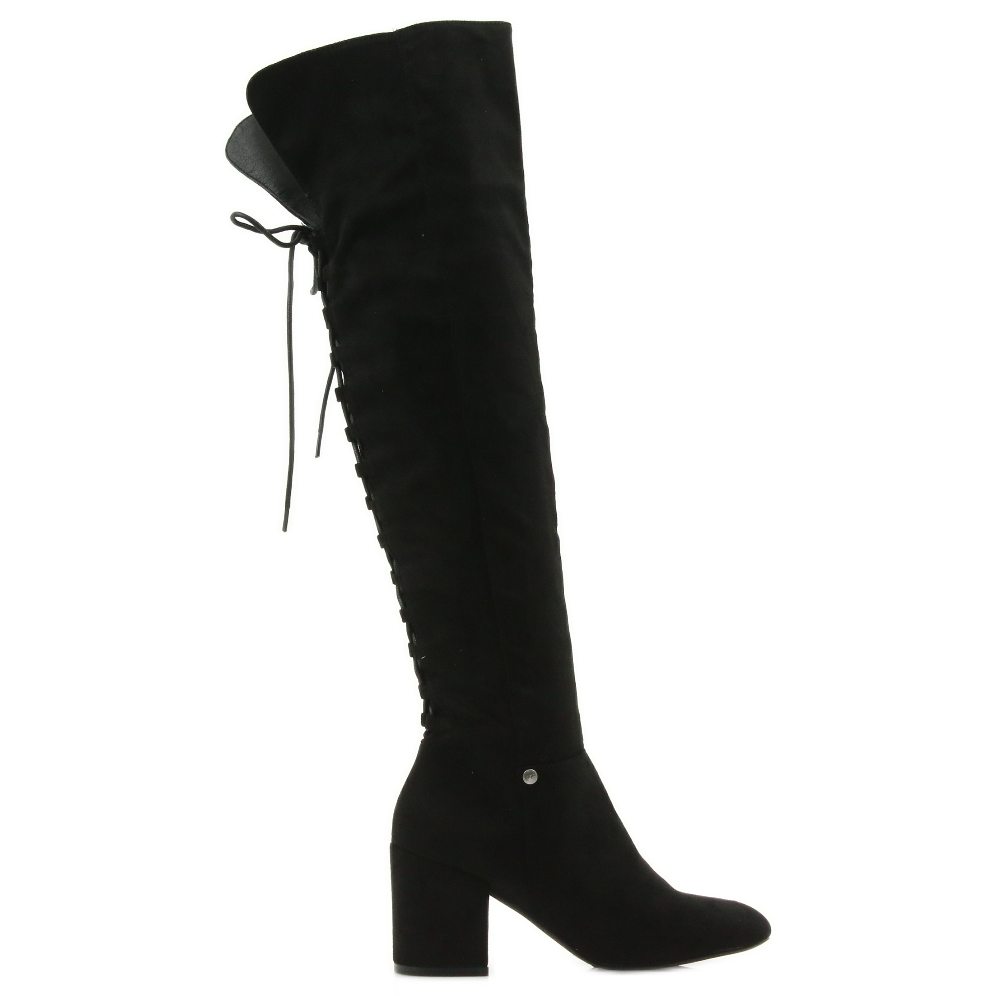Černé kozačky na vysokém podpatku Big Star 274517 jsou perfektní volbou pro mladé ženy, které chtějí spojit eleganci s pohodlím. Tyto jedinečné boty se vyznačují vysokým svrškem dosahujícím 52 cm a šířkou kotníku 22 cm (u velikosti 38), díky čemuž perfektně padnou k nohám a podtrhují jejich štíhlost.