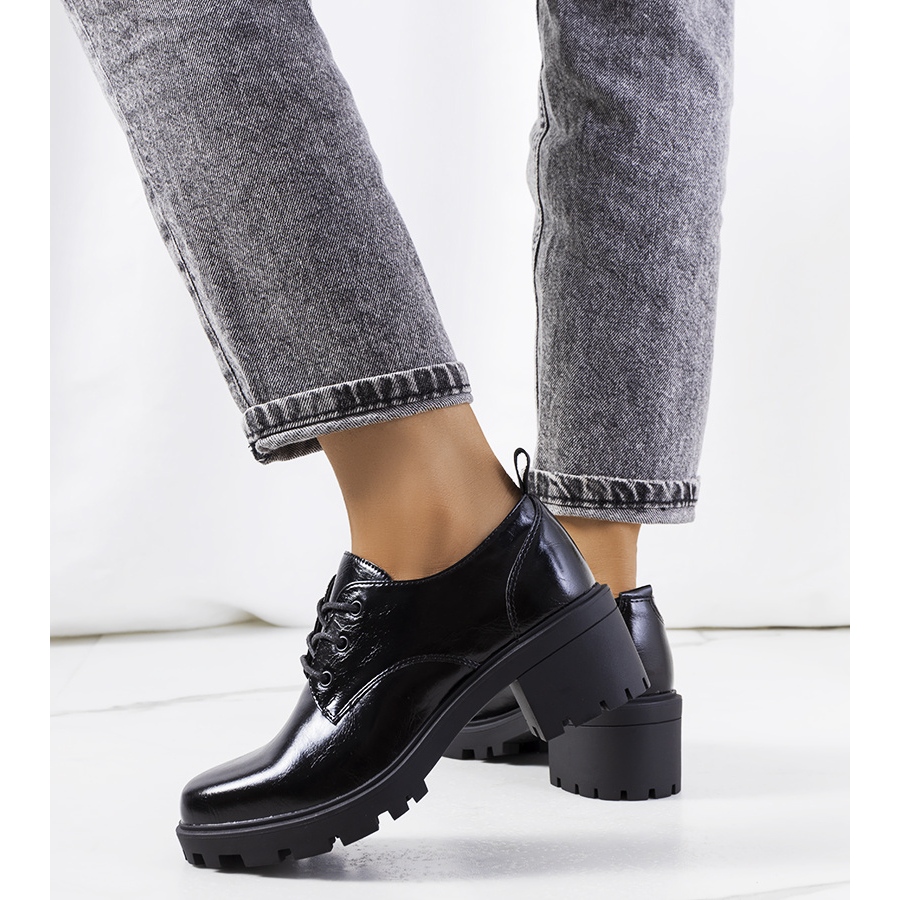 Vysoká trapperová podrážka a silný 5,5 cm vysoký sloupek dodávají botám charakter a stabilitu, díky čemuž jsou perfektní jak pro každodenní použití, tak pro speciální příležitosti. Díky šněrování lze boty dokonale přizpůsobit noze, což zvyšuje komfort při chůzi. Vložka z přírodní kůže zajišťuje správnou ventilaci a pohodlí při nošení. Upozorňujeme, že číslování je přehnané, proto se doporučuje zvolit menší velikost.