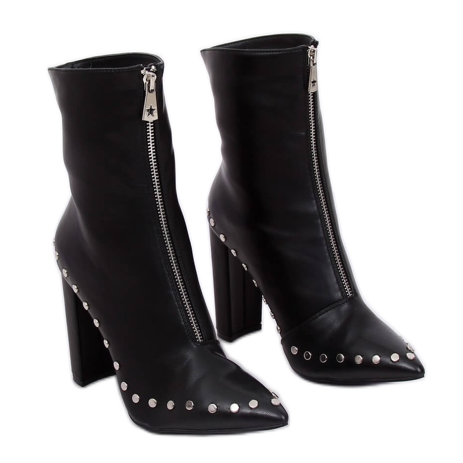 Boty se vyznačují nejen svým okázalým vzhledem, ale také funkčností. Použití zipu vpředu usnadňuje jejich nazouvání, což je činí extrémně praktickými při každodenním používání. Jemná špičatá špička dodává eleganci a poutavé cvočky a kamínky dodávají odvážný charakter.