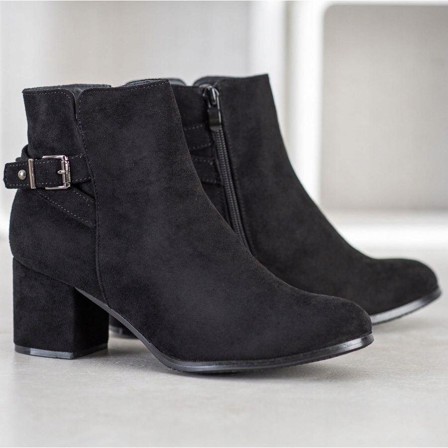 Objevte eleganci a pohodlí s kotníčkovými botami J. Star na vysokém podpatku v klasické černé barvě. Tyto jedinečné dámské kozačky vyrobené z vysoce kvalitní ekologické semišové kůže jsou perfektní volbou pro chladnější dny podzim/zima.