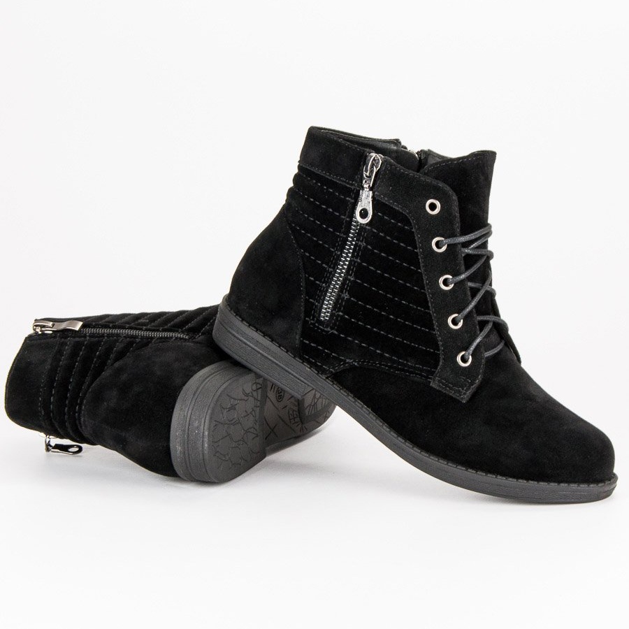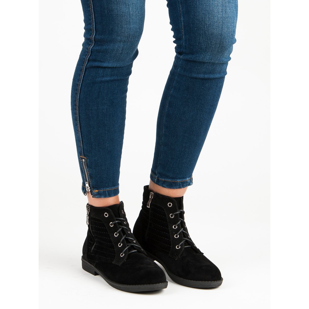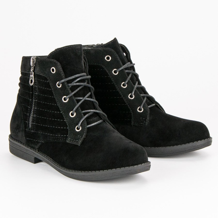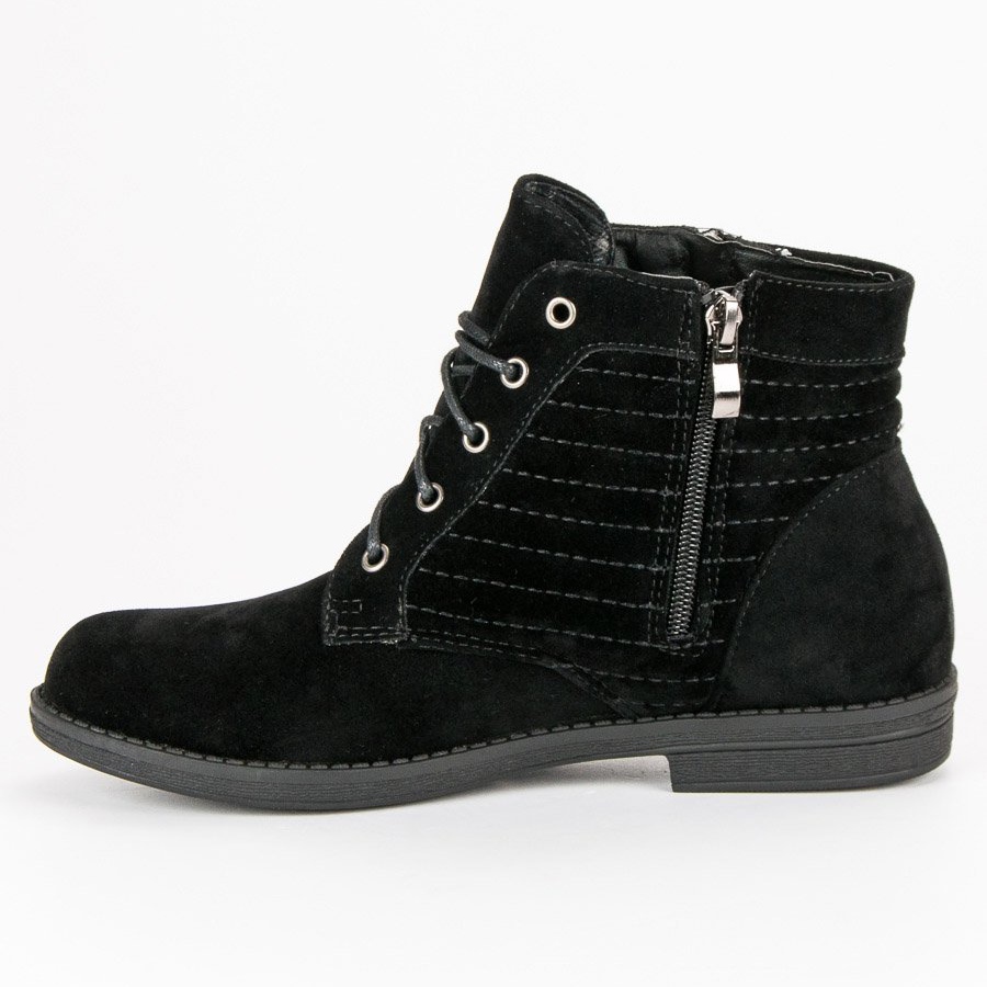 Botymodne vyrobené z ekologického semiše se vyznačují pečlivou úpravou a důrazem na detail. Nabízejí praktický zip a šněrování, díky kterému se snadno nazouvají a přiléhají k noze. Díky nízkému podpatku 1,5 cm jsou pohodlné pro každodenní nošení a měkký, zabudovaný podpatek dodává eleganci.