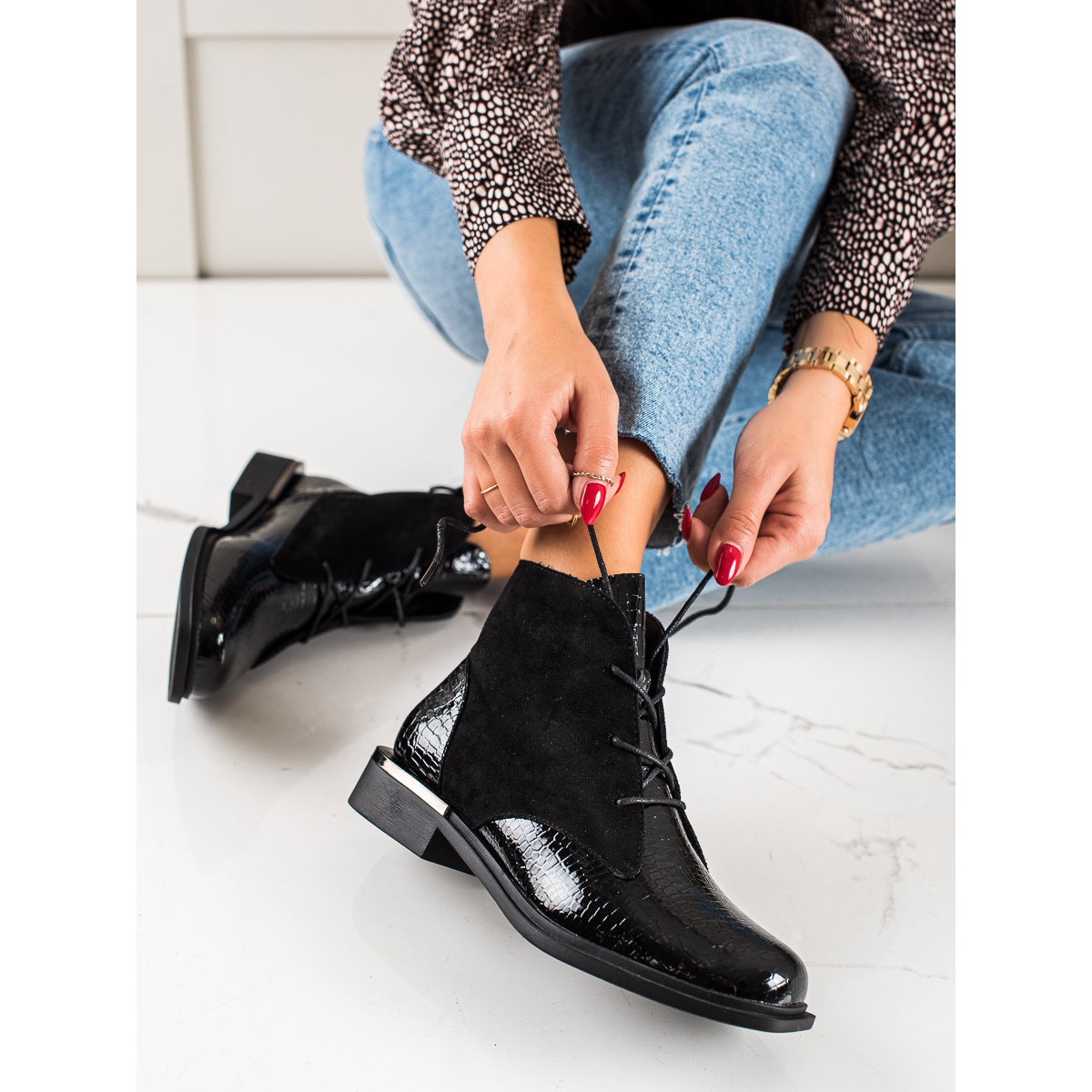 Kozačky vyrobené z kvalitních materiálů mají svršek z ekologické kůže s přídavkem imitace semiše, který jim dodává jedinečný charakter. Originální zvířecí vzor přitahuje pozornost a černá barva je činí mimořádně univerzálními.