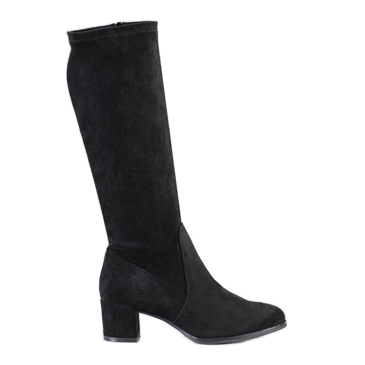 Černé kozačky Sergio Leone jsou perfektní volbou pro ženy, které ocení eleganci a klasický styl. Tyto stylové boty jsou vyrobeny z vysoce kvalitní imitace semiše, díky čemuž vypadají mimořádně efektně a zároveň jsou šetrné k životnímu prostředí. Jejich nadčasový design je předurčuje k mnoha příležitostem - jak na každý den, tak na elegantní výlety nebo večírky.