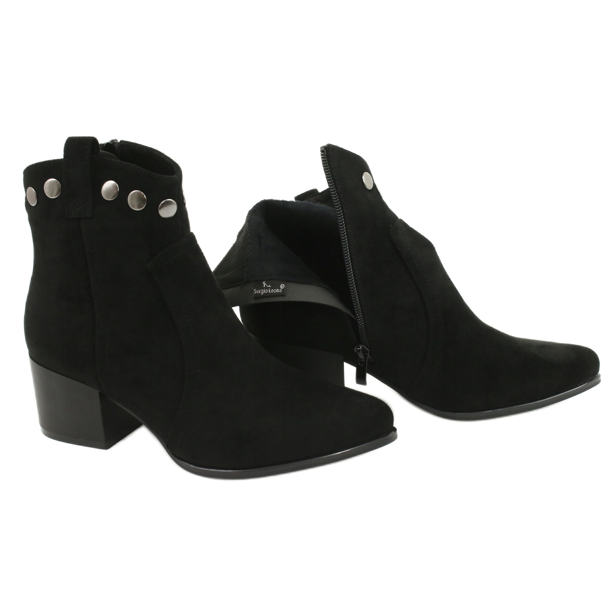 Černé kotníkové boty Sergio Leone BT617 jsou perfektní volbou pro každou módní ženu, která ocení eleganci a klasický design. Tyto nápadné černé boty vyrobené z vysoce kvalitní ekologické semišové kůže se budou skvěle hodit k nejrůznějším stylům – formálním i každodenním.