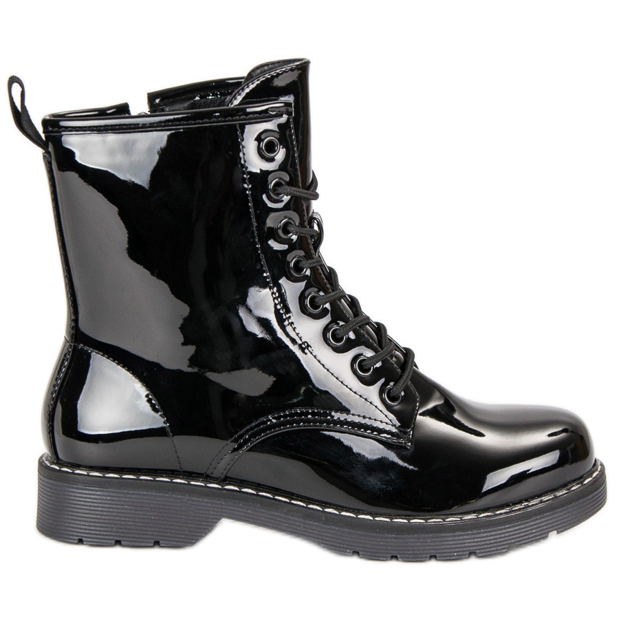 Černé bovverky VINCEZA jsou vynikající obuví, která jistě osloví všechny milovníky módního stylu. Tyto boty s vysokým svrškem vyrobené z lakované ekologické kůže se perfektně hodí do podzimních a zimních trendů. Jejich praktické šněrování a boční zip usnadňují nazouvání a přizpůsobení noze.